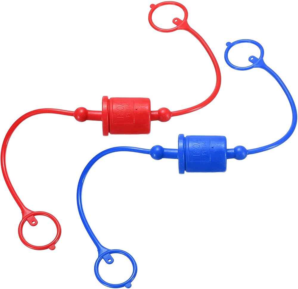 HARFINGTON مجموعتان 3/4 غطاء غبار خرطوم هيدروليكي ومجموعة قابس، غطاء غبار ذكر ISO-A وغطاء قابس أنثى يفصل بسرعة غطاء قارنة الهواء وتجهيزات قابس منفذ مع حلقة الاحتفاظ، أحمر/أزرق in Kuwait
