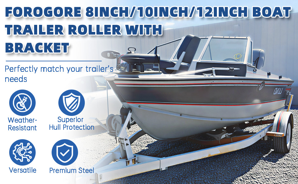 【الاستخدام】: تصميم دعامة دوارة لمقطورة القارب مقاس 8 بوصات من ForoGore لدعم عارضة القارب الخاص بك، تصميم الأسطوانة لحماية هيكل القارب الخاص بك وعارضة القارب عندما يكون القارب الخاص بك داخل وخارج المقطورة بشكل موثوق