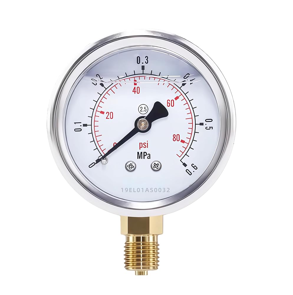 【مملوء بالجليسرين، مقاوم للاهتزاز】الميناء مقاس 2.5 بوصة موجود في الفولاذ المقاوم للصدأ 304 المتين لمقاومة ممتازة للتآكل وحماية الآلية الداخلية. تضمن حشوة الجلسرين حركة مؤشر سلسة ومستقرة وتمتص بشكل فعال اهتزازات 5-50 هرتز، مثالية للبيئات الصناعية.