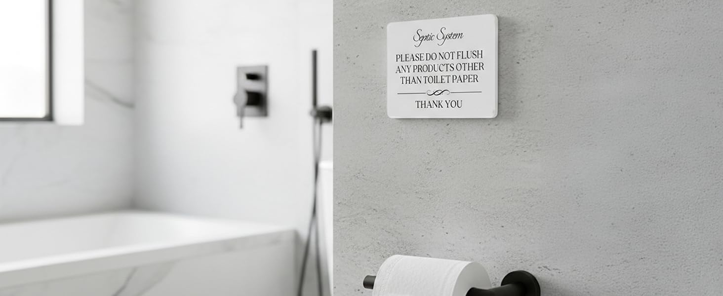 حماية السباكة والصرف الصحي: استخدم علامة نظام الصرف الصحي هذه للحمام لتوجيه الضيوف بوضوح إلى تنظيف ورق المرحاض فقط ومنع السدادات والنسخ الاحتياطي والإصلاحات المكلفة. مثالية لعلامات الحمام للأعمال التجارية والإيجارات والمنازل ذات أنظمة الصرف الصحي أو السباكة الحساسة.