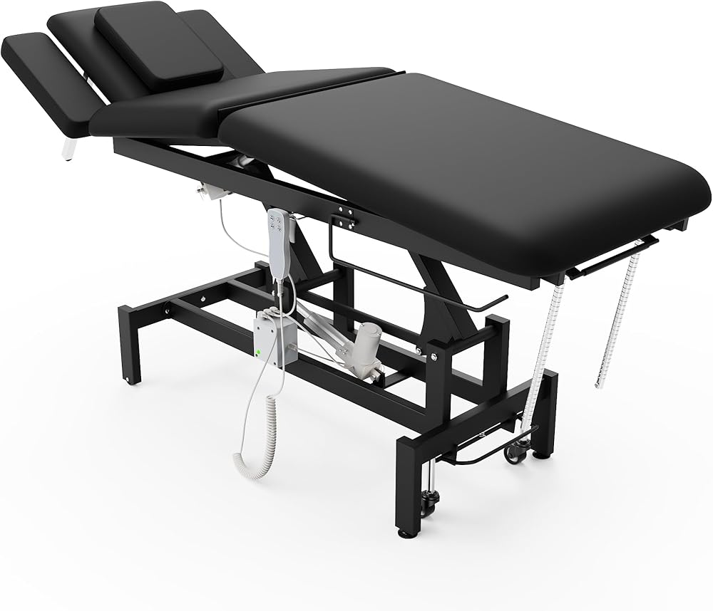 طاولة تدليك العمود الفقري الكهربائية، محركين كهربائي هيدروليكي، وظائف رفع الخصر والارتفاع قابلة للتعديل للعلاج/العلاج الطبيعي/تدليك العمود الفقري/منتجعات الوجه/إزالة الشعر بالشمع/الوشم - أسود in Kuwait