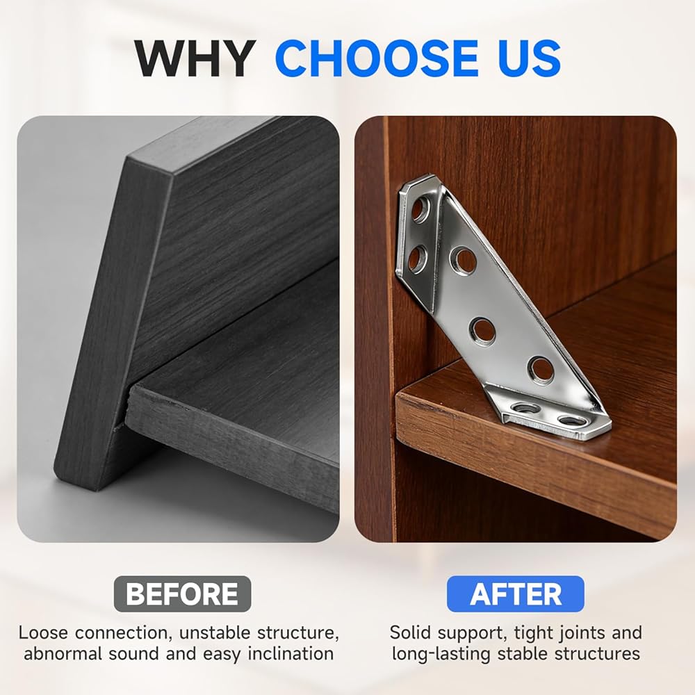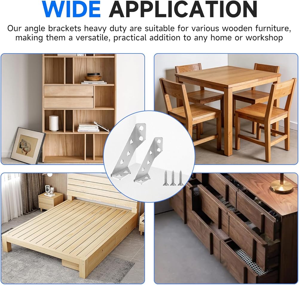 Versatile application: Our angle brackets heavy duty are suitable for various wooden furniture including doors, windows, chairs, tables, drawers, cabinets and beds, making them a versatile, practical addition to any home or workshop