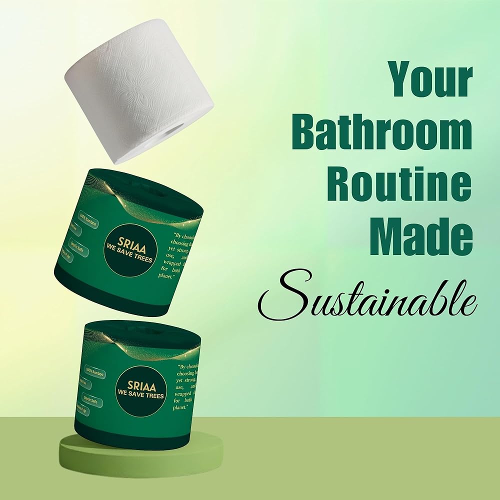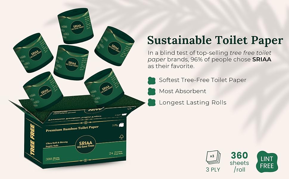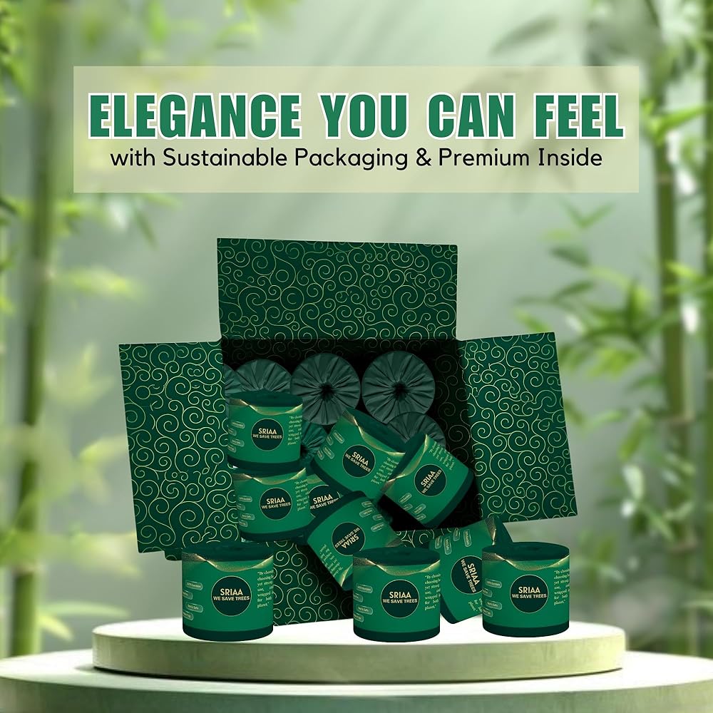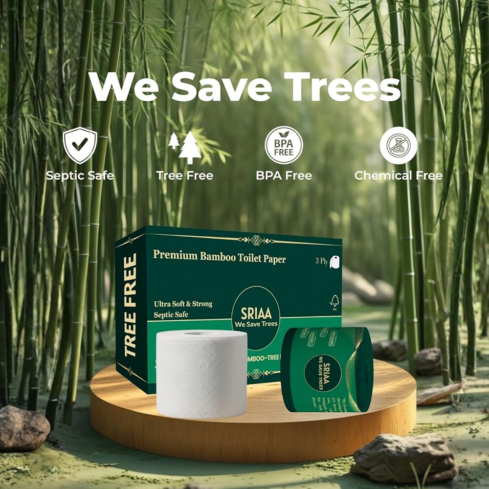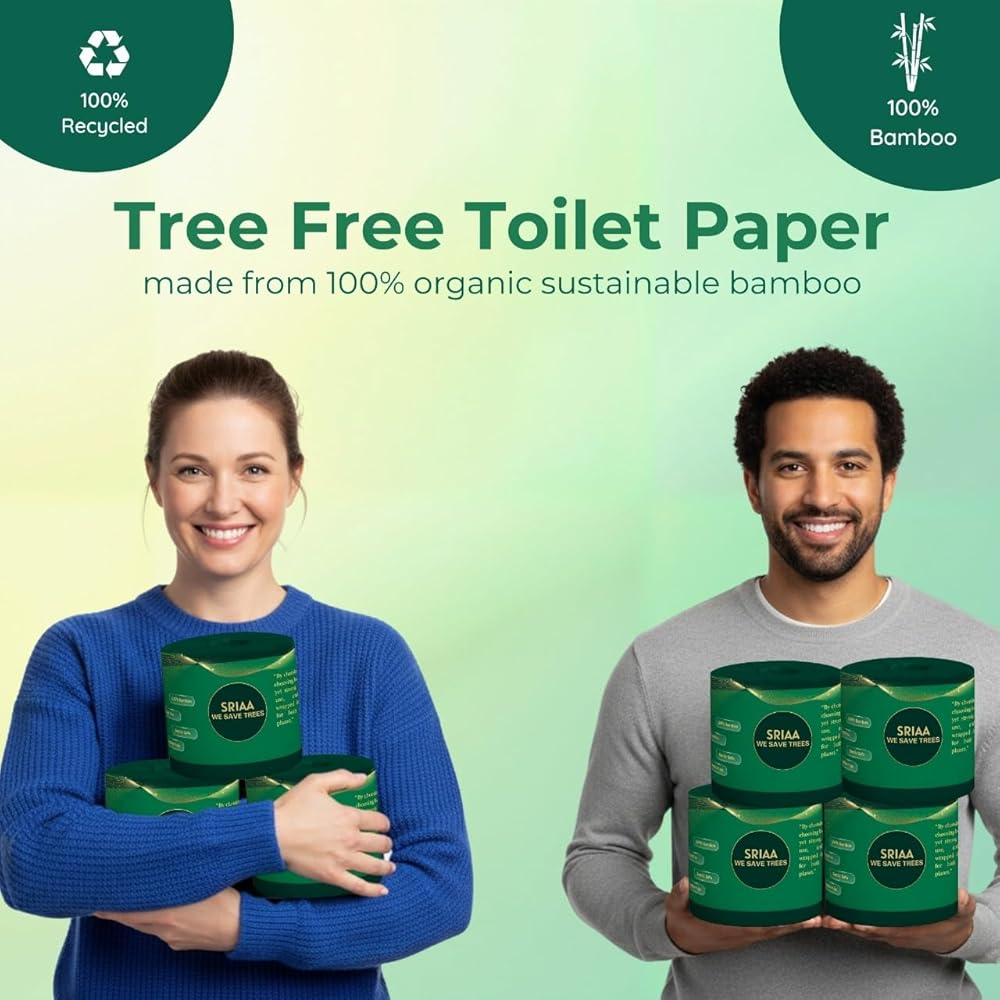 - مصنوع من الخيزران بنسبة 100% - ورق التواليت SRIAA مصنوع من لب الخيزران المتجدد، وهو بديل مستدام خالٍ من الأشجار.
