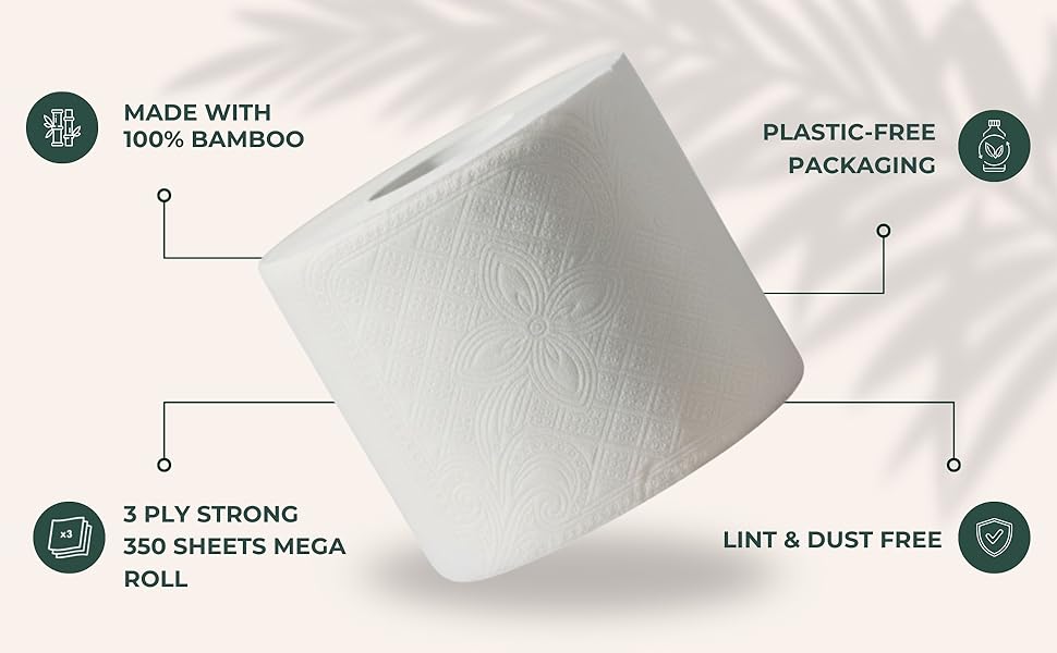 - تغليف خالٍ من البلاستيك - كل لفة مغلفة بشكل فردي بورق قابل لإعادة التدوير لتقليل النفايات البلاستيكية.