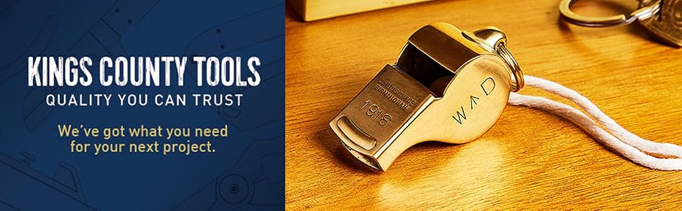 صافرة نحاسية مع حلقة سلسلة مفاتيح - صافرة عالية الصوت بقوة 114 ديسيبل للمدربين والحكام والمتنزهين ومعدات الشرطة - تصميم ضابط مدفعية أصلي من الحرب العالمية الأولى - معدات نجاة في حالات الطوارئ مصنوعة في المملكة المتحدة من شركة Kings County Tools