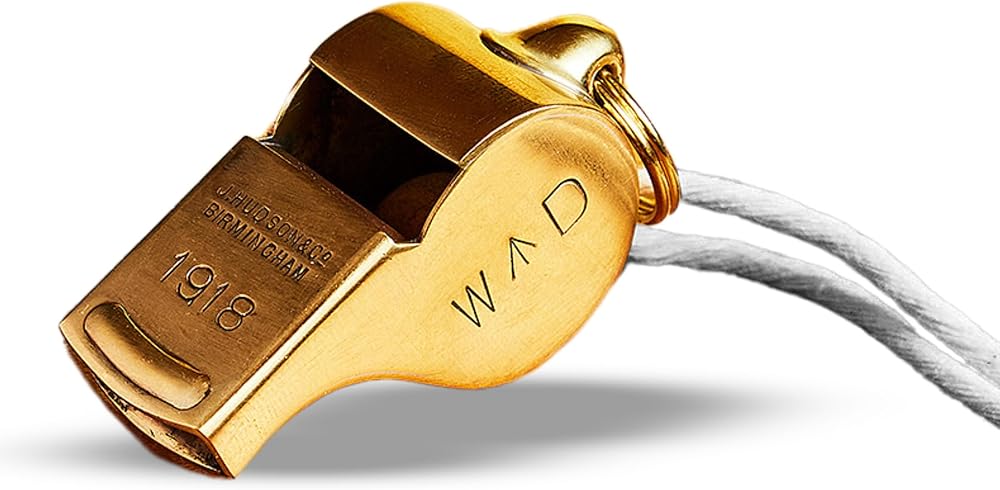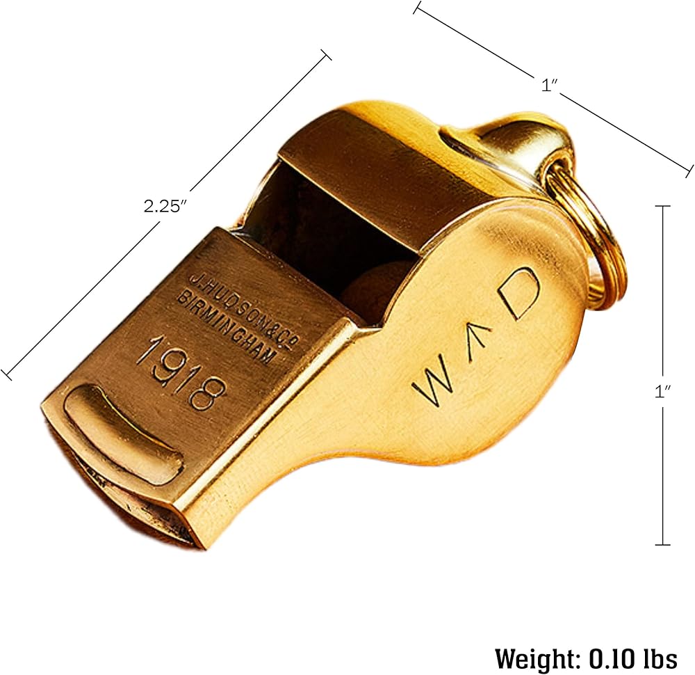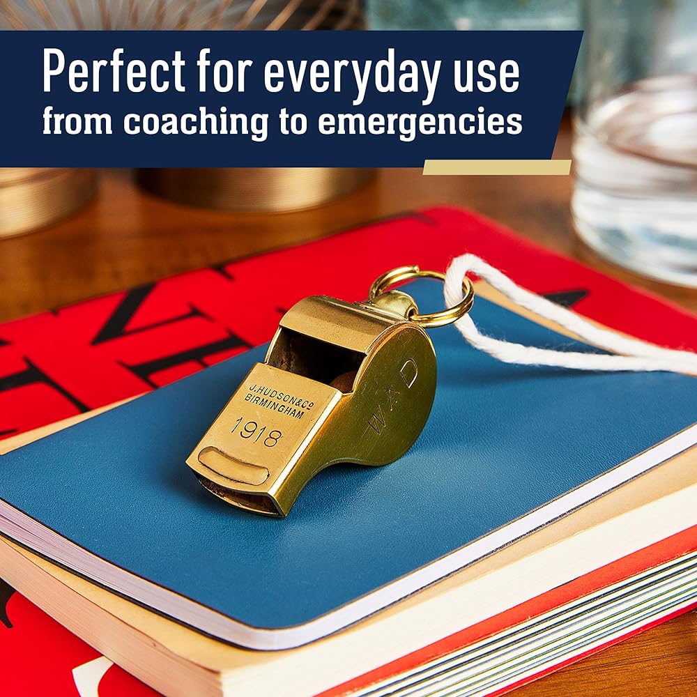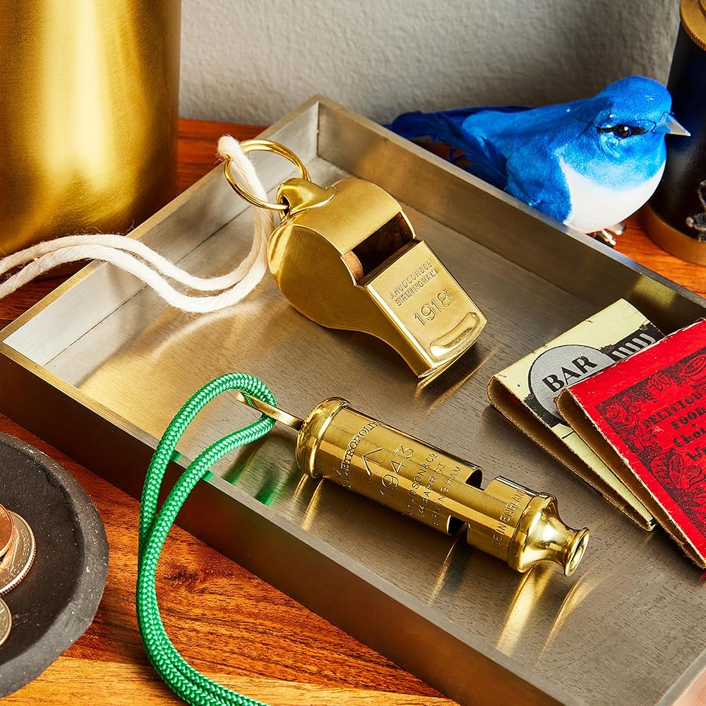 صافرة نحاسية - صافرة الأمان هذه هي قطعة فريدة من التاريخ مصنوعة يدويًا بشكل جميل في المملكة المتحدة في المصانع الأصلية باستخدام أدوات عمرها قرن من الزمان. تشتمل صافرة الحكم على حلقة سلسلة مفاتيح، حتى تتمكن من ربطها بمفاتيحك أو حبل قصير.