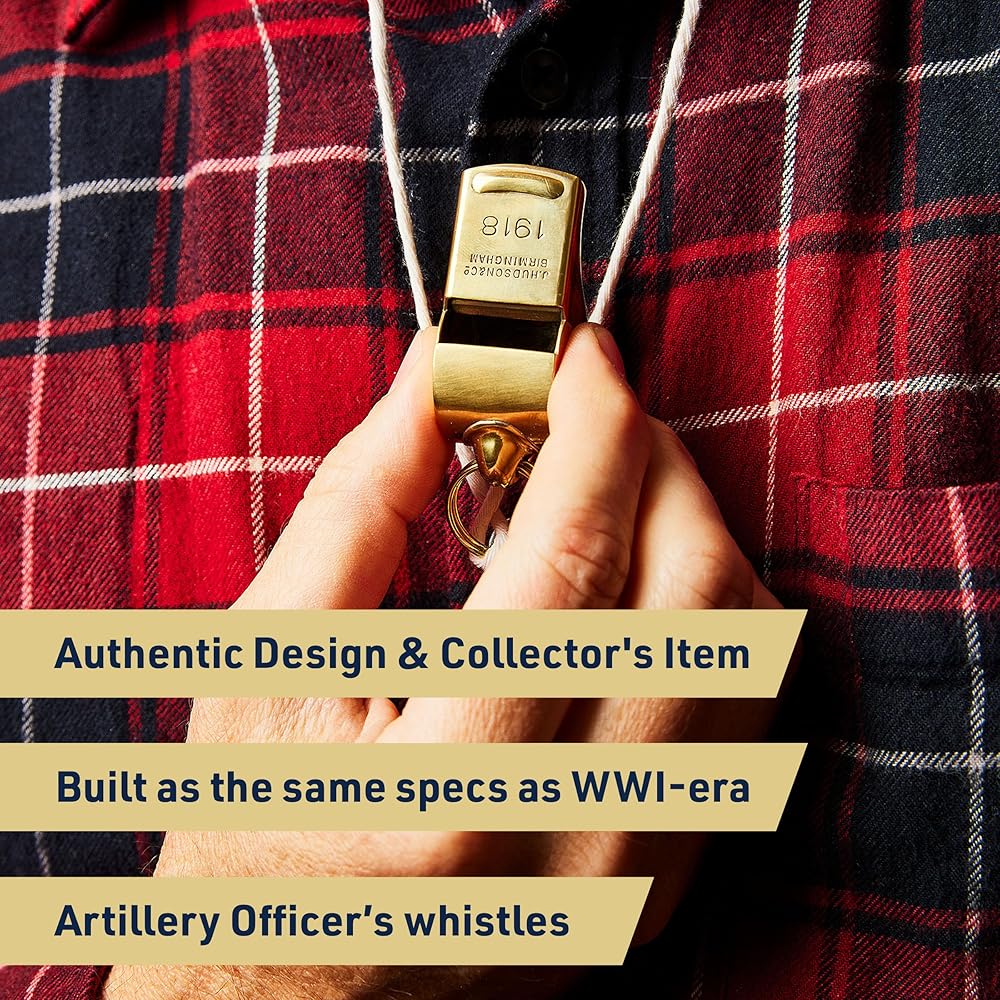 تصميم أصلي - تم تصميم صفارات الأمان الخاصة بنا باستخدام نفس مواصفات صفارات ضباط المدفعية في حقبة الحرب العالمية الأولى للحصول على نسخة طبق الأصل فريدة وعالية الجودة ذات جذور تاريخية عميقة. تأتي كل صفارة طوارئ مع شهادة أصالة.