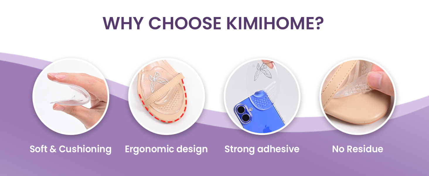 لاصق قوي يبقى ثابتًا - تبقى وسادات القدم الخاصة بنا ثابتة في مكانها بفضل دعامة اللاصق القوية. تحافظ الوسادات على مكانها طوال الأنشطة اليومية ويتم إزالتها بشكل نظيف دون إتلاف حذائك أو ترك بقايا.
