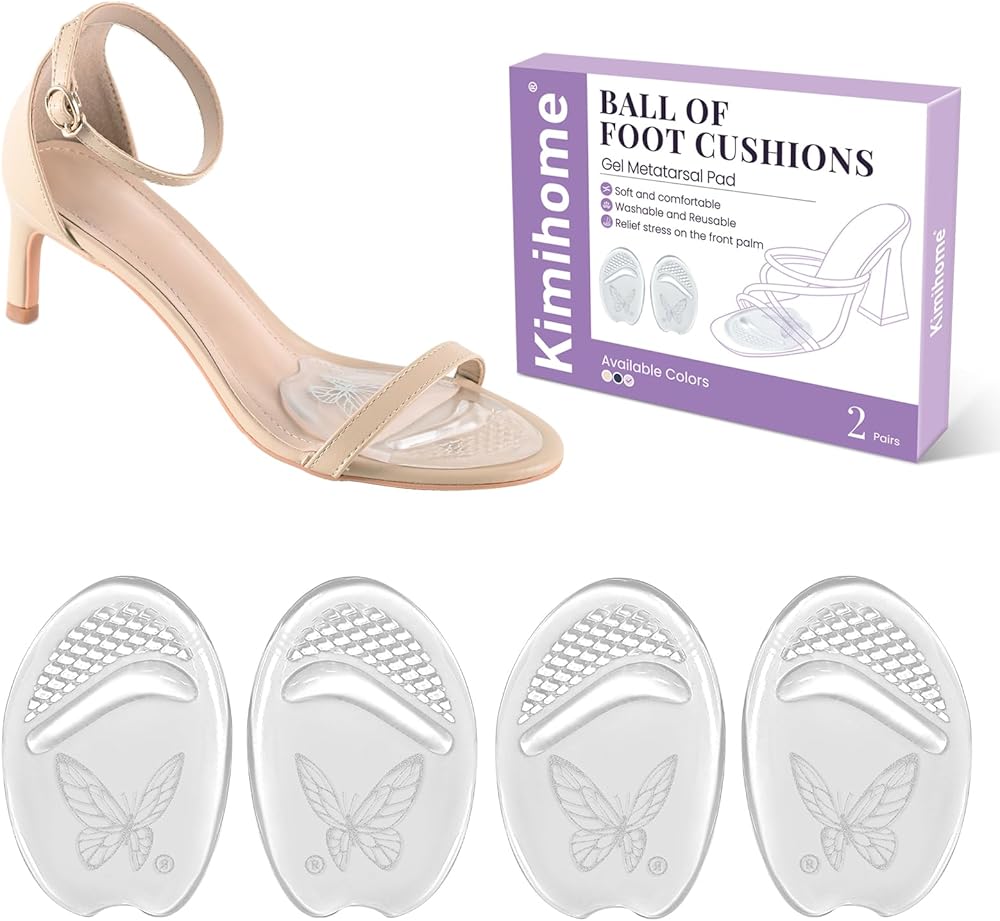 وسائد كرة القدم للنساء - زوجان من وسادات مشط القدم من الجل للنساء من Kimihome، نعل داخلي للكعب العالي، وسادات قدم مريحة غير قابلة للانزلاق للدعم، وتخفيف الألم، والبثور، والأحذية الفضفاضة (شفاف)