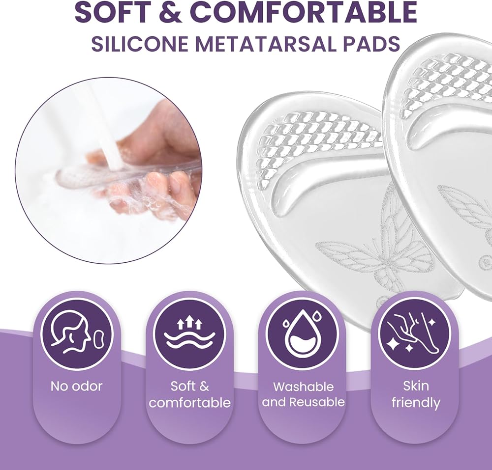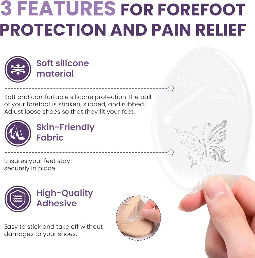 دعم مبطن لراحة طوال اليوم - توفر وسادات مشط القدم المصنوعة من الجل امتصاصًا للصدمات ودعمًا مريحًا لمقدمة قدمك. تساعد مادة الجل الناعمة على تخفيف الضغط أثناء الارتداء لفترات طويلة في حفلات الزفاف أو الحفلات أو أحداث الرقص مع الحفاظ على حركة القدم الطبيعية.