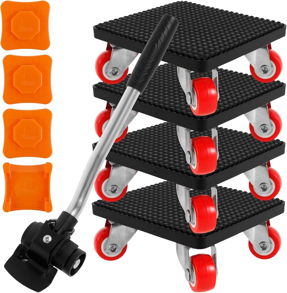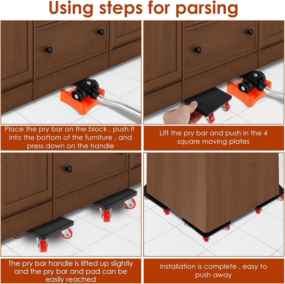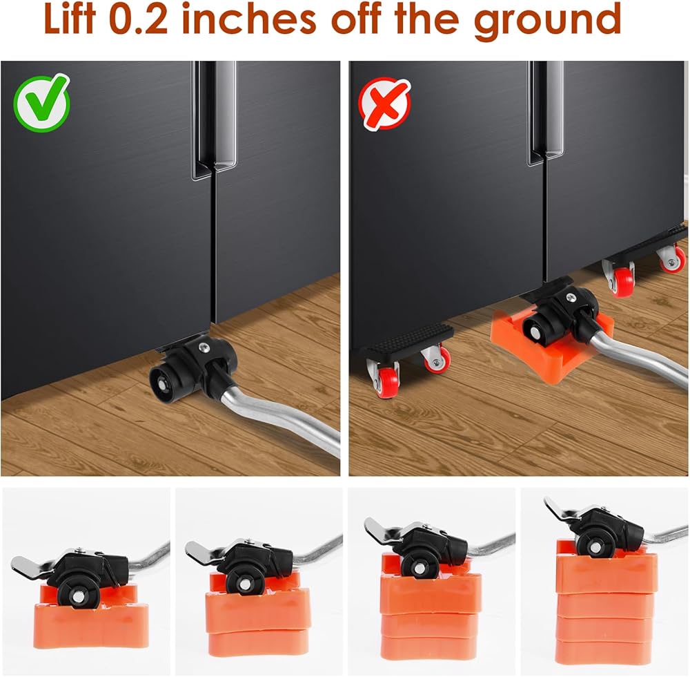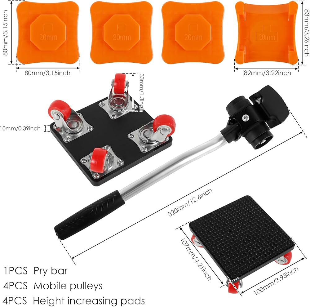 High-Quality Materials: The furniture lift moving tool adopts carbon steel surface, ABS thickened pulleys, which can move heavy objects smoothly and without noise. The 4pcs lift mover can bear weight within 880lbs