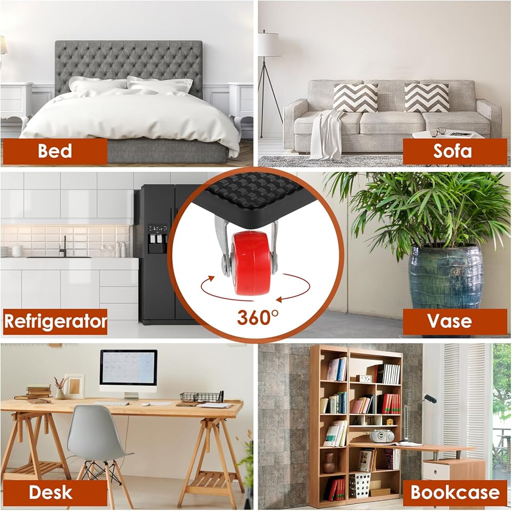 Easy to Move Furniture: You need to lift the furniture off the ground so that the furniture lifter is under the furniture, and then push the 4 rollers into the four corners. It is also a good helper for your cleaning. Not easy to use on carpets