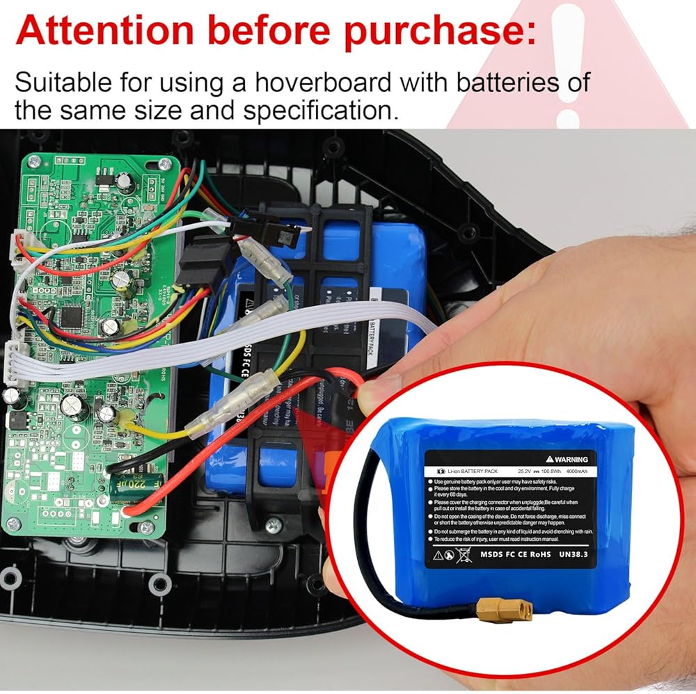 • سعة أعلى: سعة أكبر 100.8￵￵W￵￵ساعة، يمكن أن توفر وقتًا أطول للاستخدام، لا حاجة للشحن بشكل متكرر، متوافقة تمامًا بنسبة 100% مع العلامة التجارية الأصلية، مناسبة لـ Hoverboard، متوافقة مع الطراز الأصلي، هي أفضل بطارية بديلة مثالية.