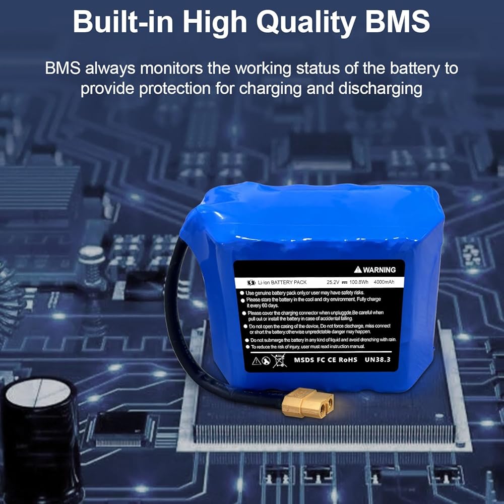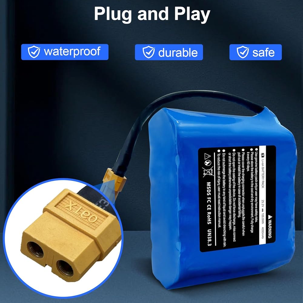 حزمة بطارية قابلة لإعادة الشحن 25.2 فولت 4 أمبير في الساعة بديلة لـ Jetson-Rave المتوافقة مع بطارية قابلة للشحن Hover-1 Superstar/Chrome 7S2P مع قابس XT60 (تناسب 29.4 فولت)