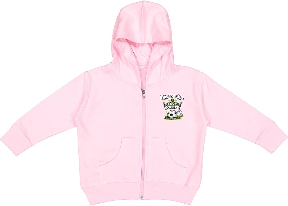 Show off your love for soccer with this fun design that reads 'Apparently Love Soccer'. Perfect for soccer fans who embrace the sport with humor and enthusiasm. Whether you're on the field or in the stands, this Toddler Hooded Jacket is a must-have for any soccer lover.