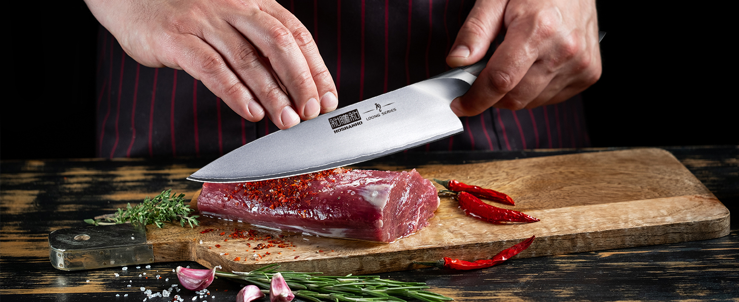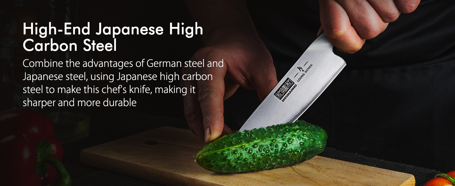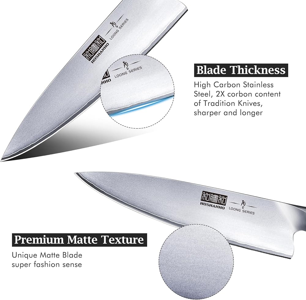 【سكين الشيف الياباني عالي الجودة】 سكين الشيف هوشانهو مصنوعة من الفولاذ الياباني عالي الكربون 10Cr15CoMoV، 2x من حدة ومتانة بعض السكاكين "المميزة" الأخرى، وتتمتع بأداء عالي التكلفة جدًا! مع صلابة تصل إلى 60 HRC، توفر سكين المطبخ مقاومة ممتازة للصدأ والحدة والمتانة.