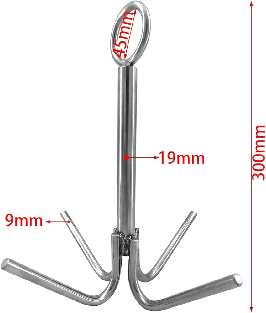 - 【Product Size】4 Claw Anchor, total length 30cm/11.81inch, top ring diameter 4.5cm/1.77inch, anchor claw diameter: 9mm/0.35inch
