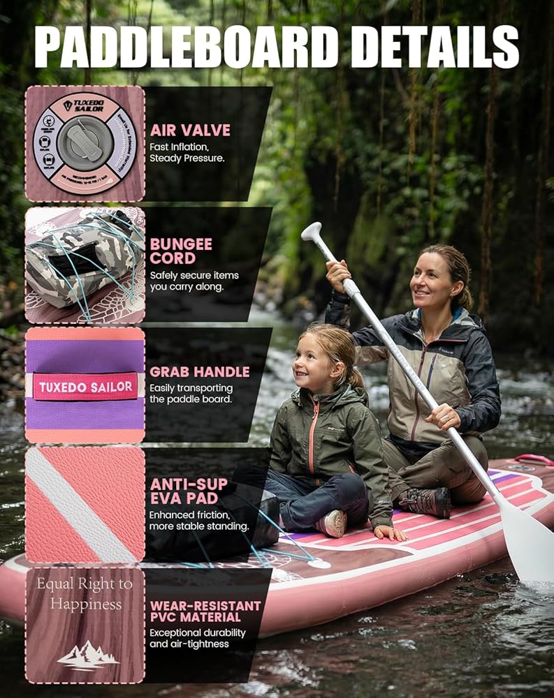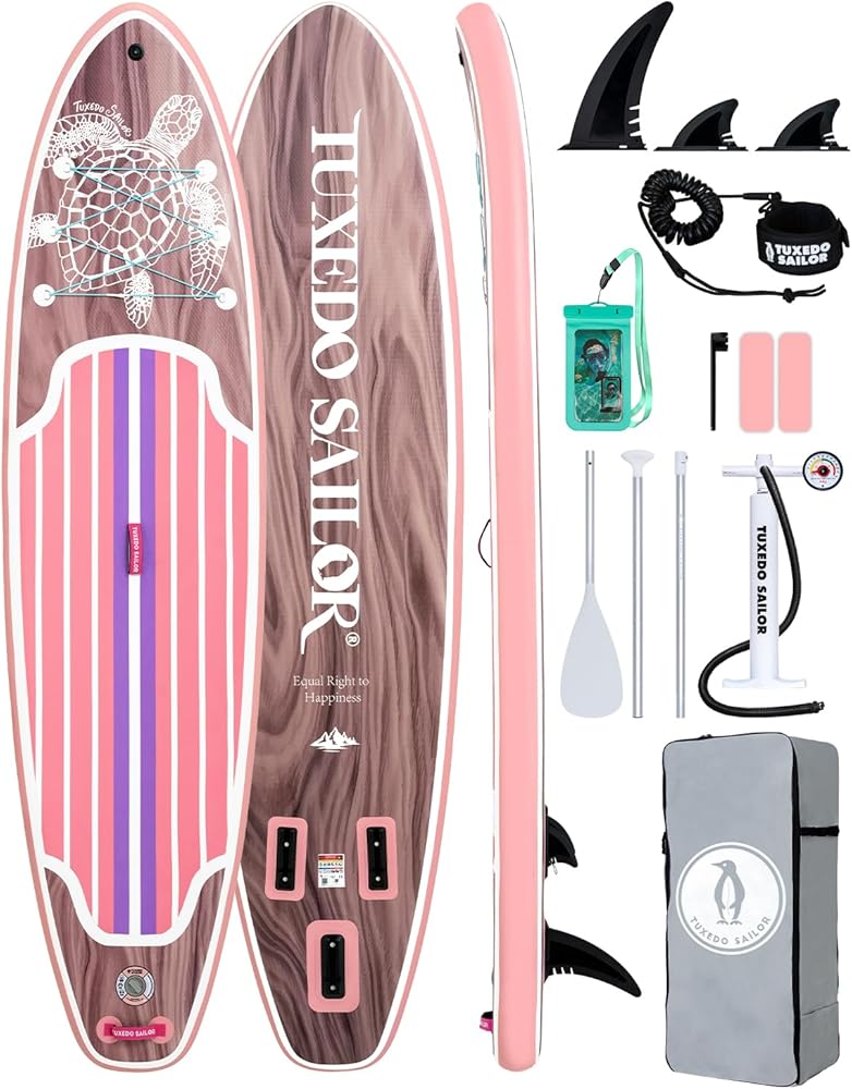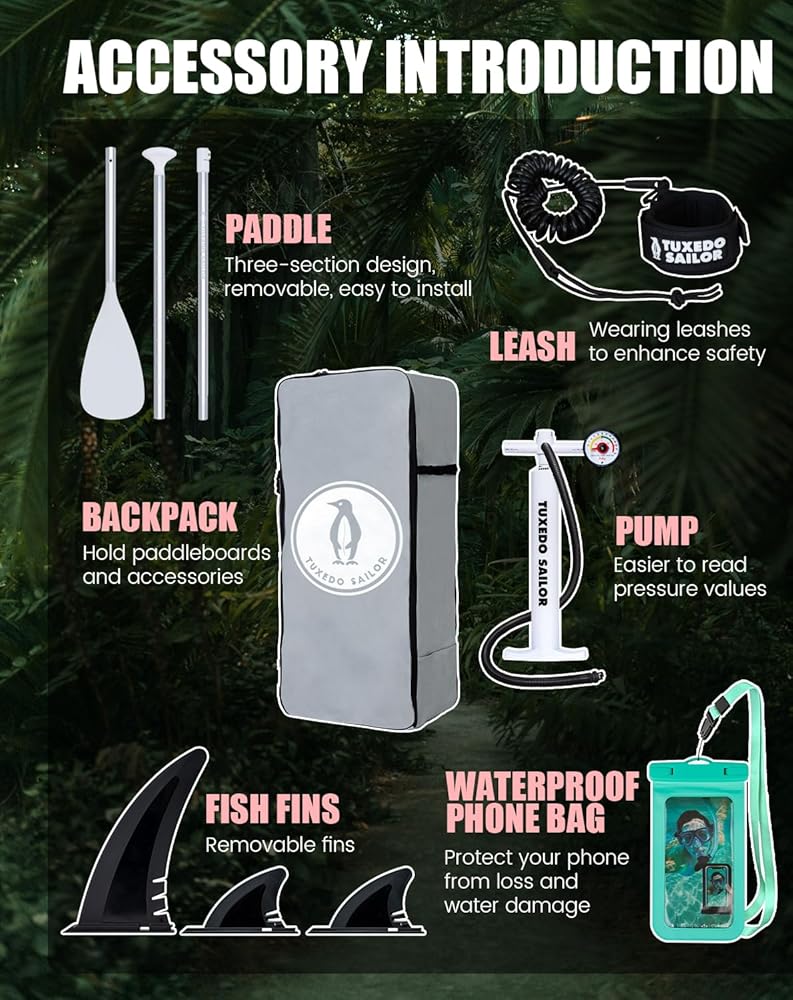 لوح تجديف قابل للنفخ بطول 11 بوصة من Tuxedo Sailor مع ملحقات SUP وسطح EVA مضاد للانزلاق وزعنفة كبيرة وألواح تجديف للبالغين والشباب من جميع مستويات المهارة