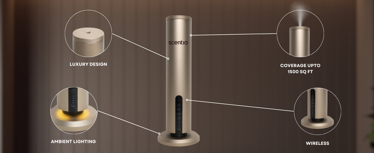 𝗟𝗮𝗿𝗴𝗲 𝗥𝗼𝗼𝗺 𝗗𝗶𝗳𝗳𝘂𝘀𝗲𝗿 𝗳𝗼𝗿 𝗨𝗽 𝘁𝗼 𝟭,𝟱𝟬𝟬 𝗦𝗾. 𝗙𝘁: صُمم ليكون موزعًا للزيوت العطرية في غرفة كبيرة، ويغطي Scentia Max ما يصل إلى 1500 قدم مربع مع 5 مستويات رائحة قابلة للتعديل. اخلق أجواءً خفيفة ورقيقة أو تجربة عطر قوية تشبه تجربة الفندق.