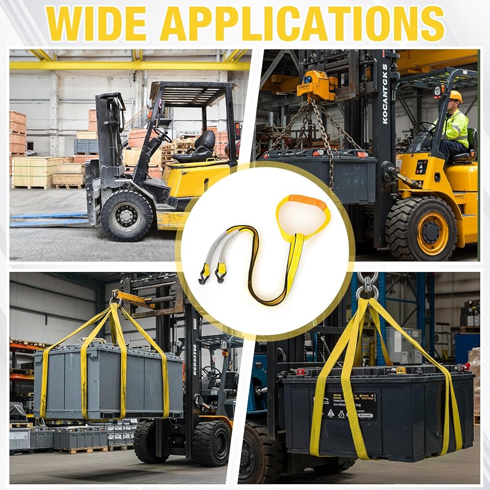 Safety Reminder: Always operate within the rated load limits and angle guidelines. Inspect the lifting sling for wear, webbing fray or hardware damage before each use. Use with compatible battery cases and lifting points. Overloading or improper hooking may damage equipment or cause injury.