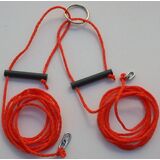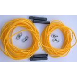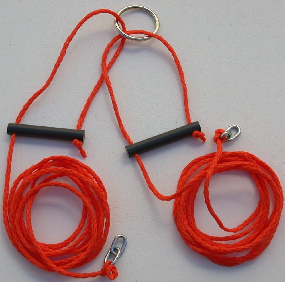 We offer two styles of rope guy line sets. Both sets are easy to adjust and manufacture from 1/4-inch hollow braid rope. Use either with your set of poles and nail stakes. The pull-down style offers easier tension application. All sets includes 1/4-inch rope lengths, four solid PVC slide bars 4-7/8 x 3/4-inch and four double zinc plated steel chain loops. The chain loops allow for quick attachment of your 3/8-inch diameter landscaping spike (not included). Our pull-down guy set includes 2.5-inch zinc plated 3/16-inch steel rings that you loop over pole top. You will need to assemble both, but on the pull-up style you will form the size of rope loop to go over the top of your poles (it does not include steel rings).