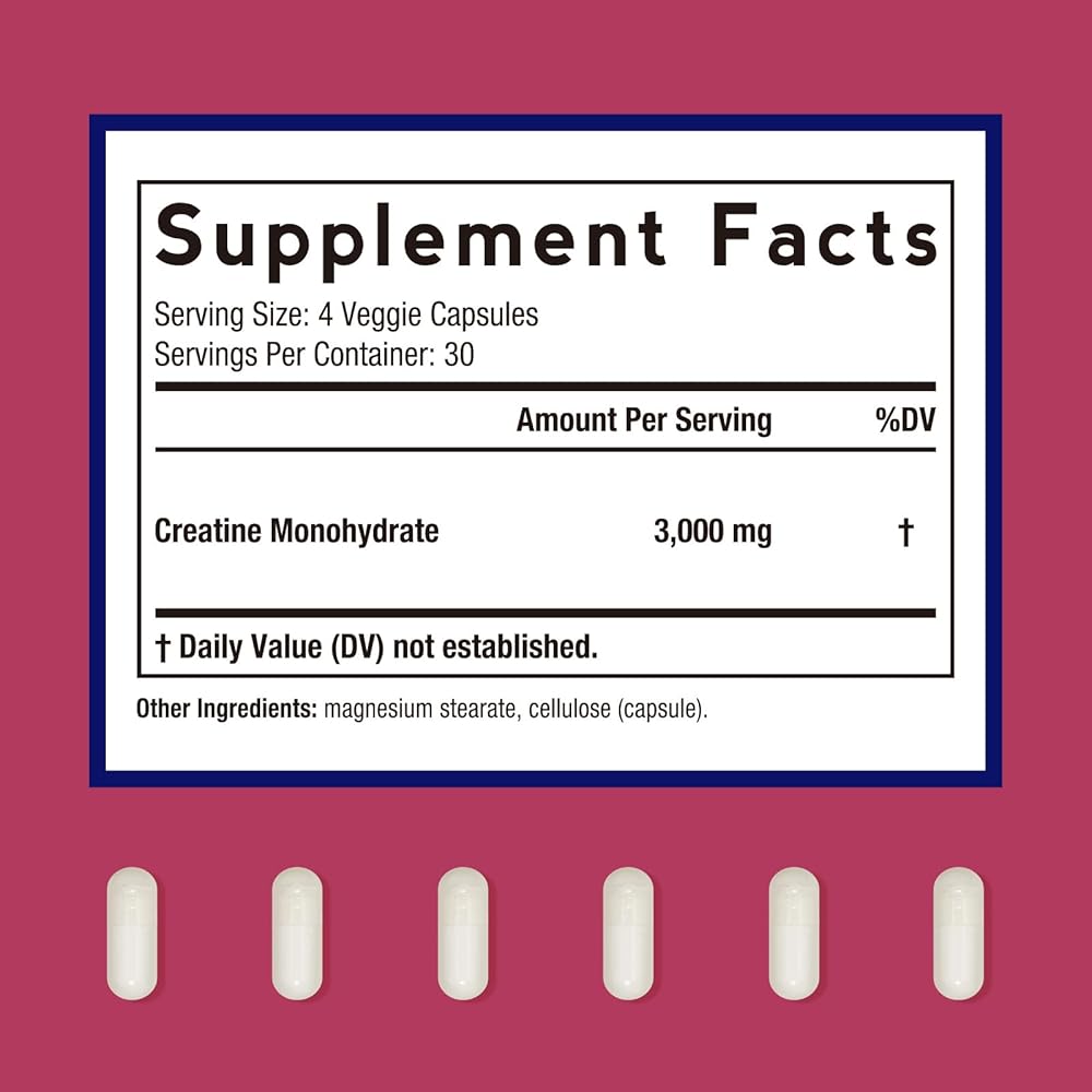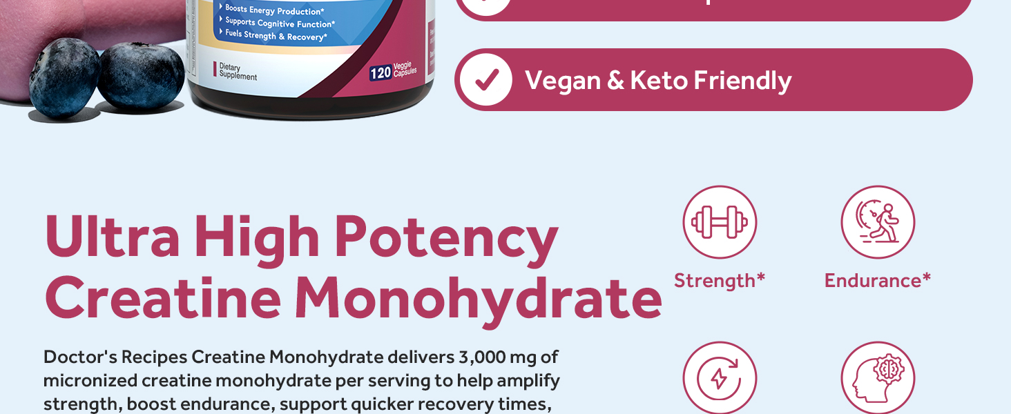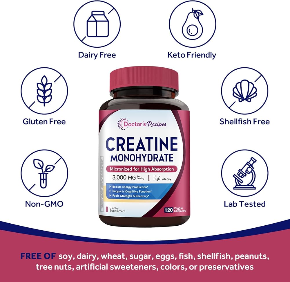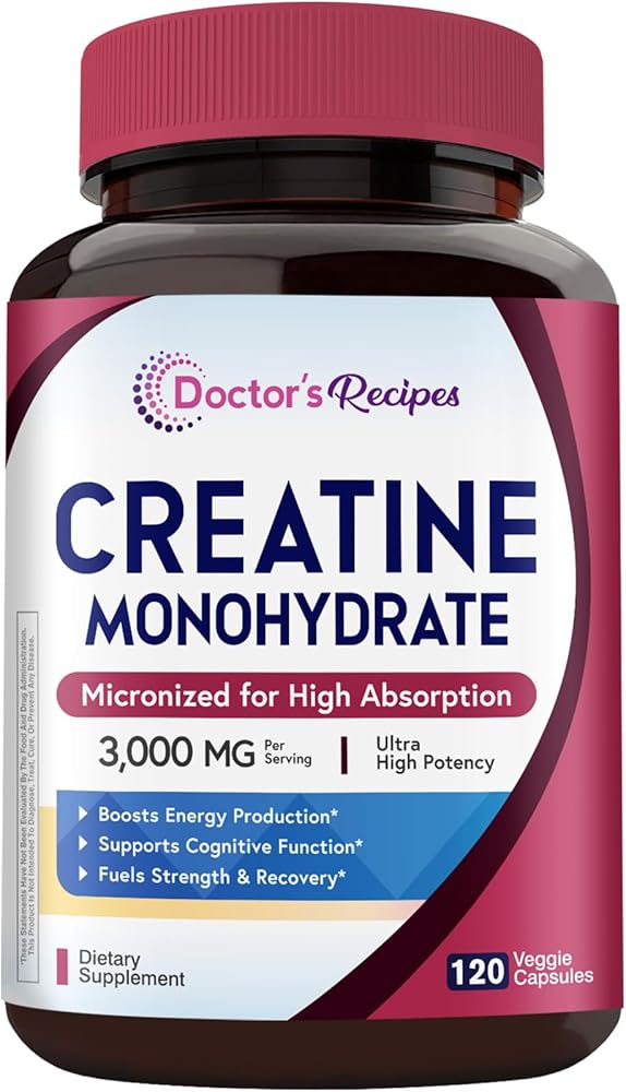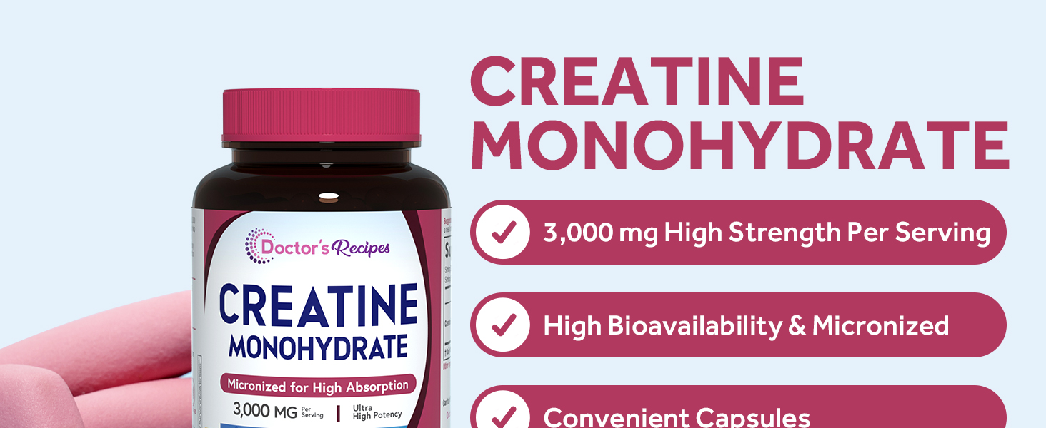 وصفات الطبيب كرياتين مونوهيدرات 3000 مجم لكل وجبة، كبسولات الكرياتين الدقيقة للنساء والرجال، للقوة والطاقة والانتعاش وامتصاص عالي، نباتي، 120 كبسولة