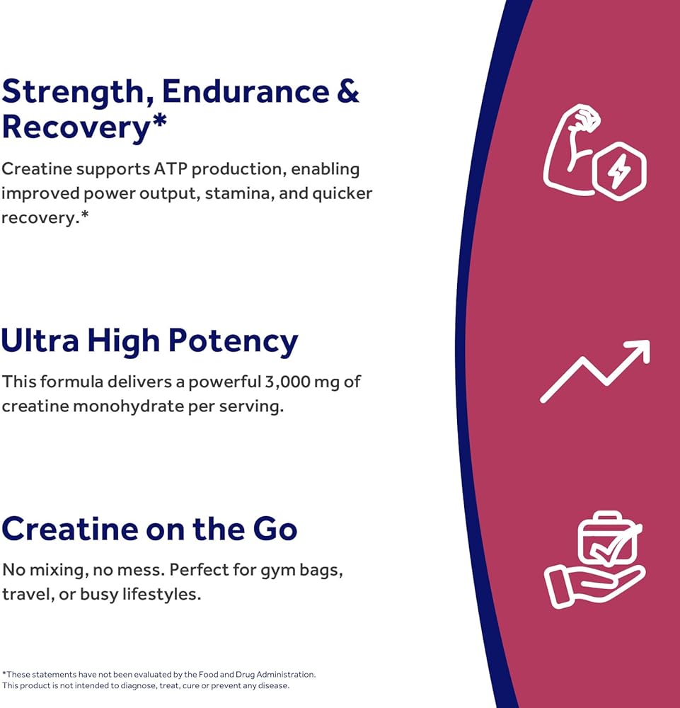 • كرياتين مونوهيدرات عالي الفعالية: توفر كل جرعة 3000 مجم (3 جم) من مونوهيدرات الكرياتين للمساعدة في توفير الطاقة وتعزيز الوظيفة الإدراكية.* يساعد هذا الكرياتين فائق القوة في الحفاظ على مستويات أعلى من ATP داخل الخلايا، مما يمكّنك من الدفع بقوة أكبر ورفع الأثقال والتعافي بشكل أسرع للحصول على أفضل النتائج.*