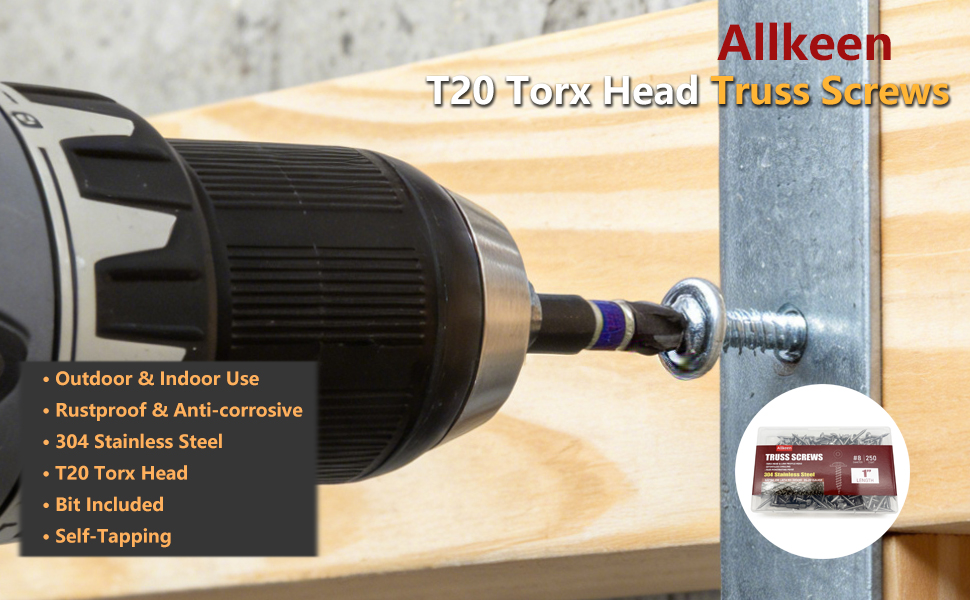 • براغي T20 Torx Head #8 × 1 بوصة ذاتية التنصت. يتميز بتصميم مترابطة بالكامل مع خيوط عميقة ونظيفة تخترق الخشب والمعادن الناعمة والبلاستيك بسهولة