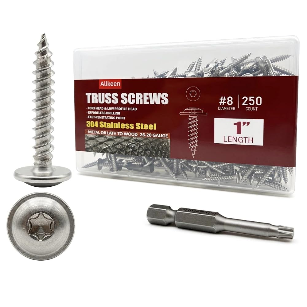 (250 قطعة) #8 × 1 بوصة T20 براغي خشبية برأس توركس 304 مسامير تروس ذاتية التنصت من الفولاذ المقاوم للصدأ