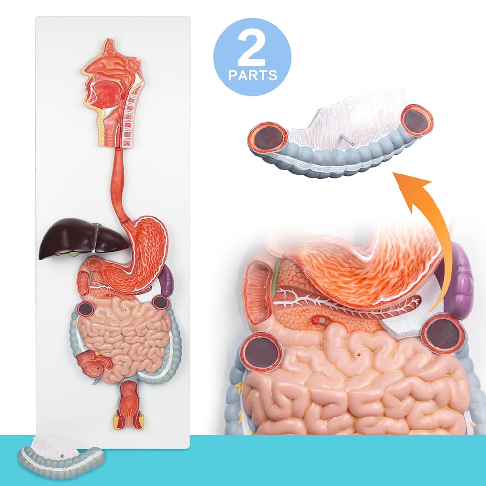 2-Piece Removable Design for Easy Study - The model can be easily separated into two parts: the digestive tract and the colon. This feature allows for detailed examination of individual organs, making it ideal for hands-on learning and teaching.