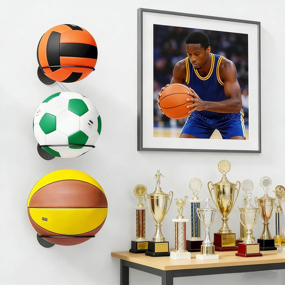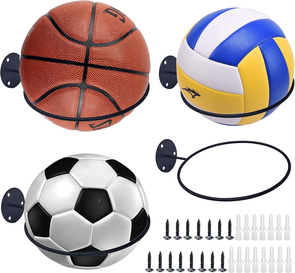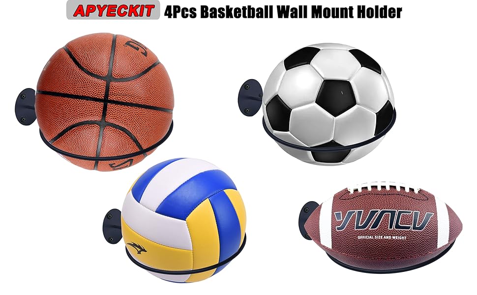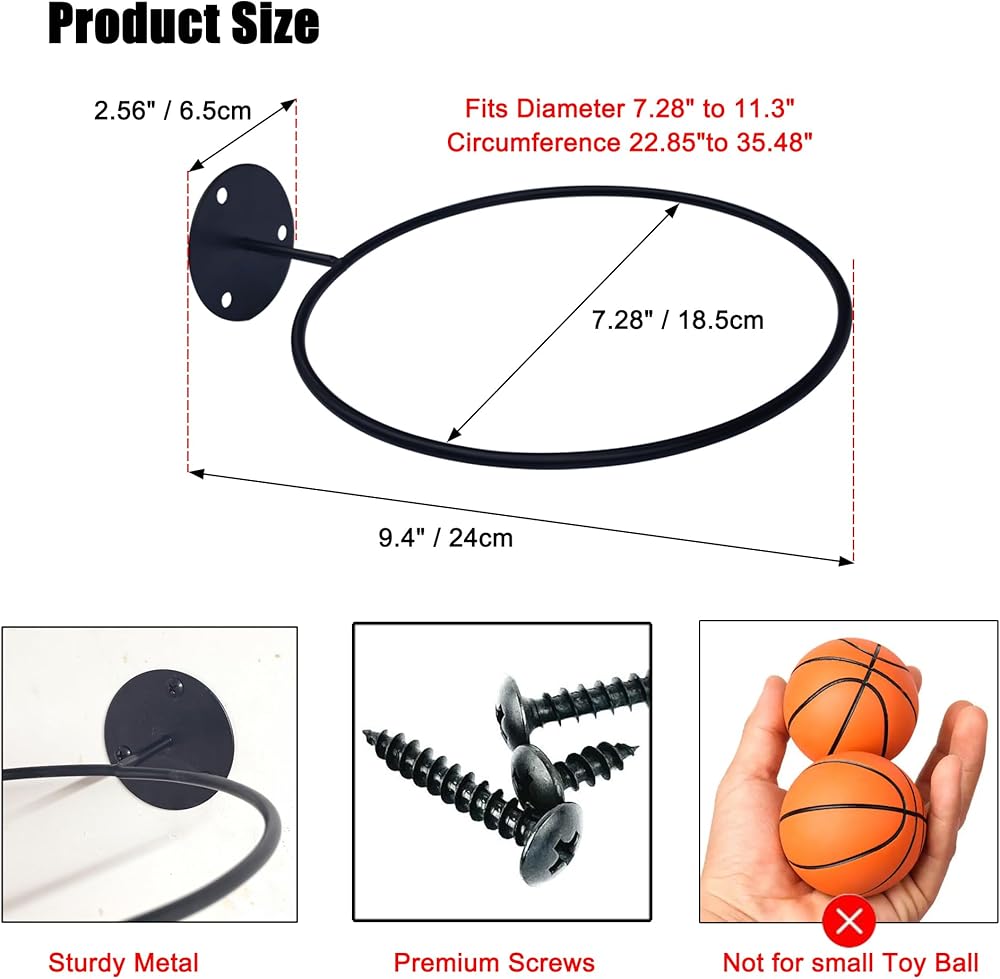 【مجموعة حامل كرة حائط من 4 قطع】سوف تحصل على 4 قطع من حامل كرة السلة على الحائط، مقاس كل منها 8.2 × 4.9 بوصة. يحمل معظم الكرات - كرات السلة، وكرات القدم، والكرات الطائرة، وكرة القدم (العرض الأفقي فقط) - والمزيد.