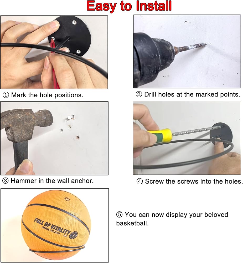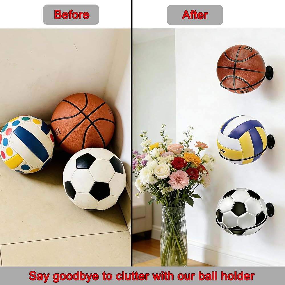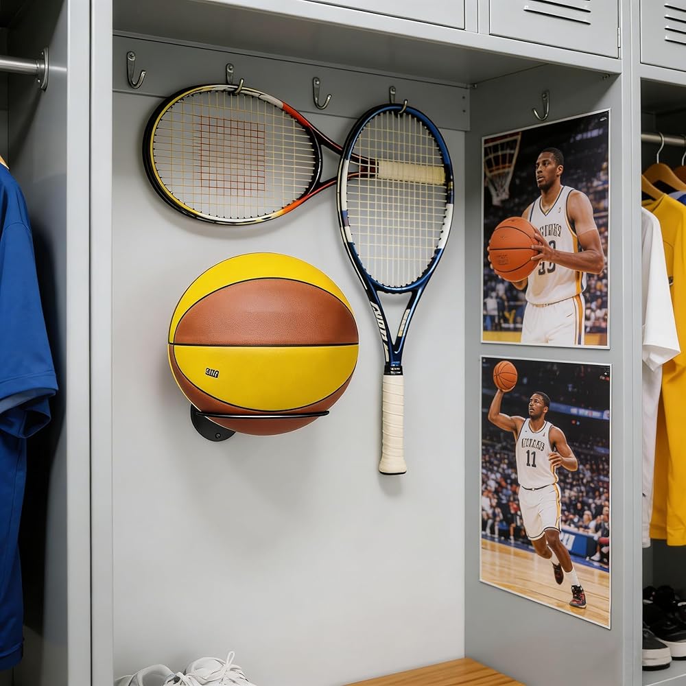 【مجموعة حامل كرة حائط من 4 قطع】سوف تحصل على 4 قطع من حامل كرة السلة على الحائط، مقاس كل منها 8.2 × 4.9 بوصة. يحمل معظم الكرات - كرات السلة، وكرات القدم، والكرات الطائرة، وكرة القدم (العرض الأفقي فقط) - والمزيد.