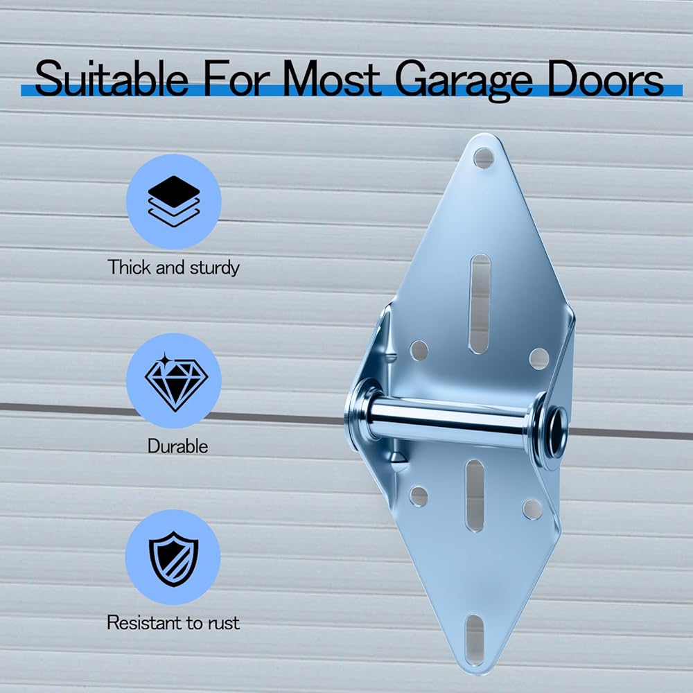• Heavy-Duty Construction & Superior Rust Protection:This garage door hinge is crafted from robust 14-gauge steel and fortified with a galvanized coating. This combination provides exceptional strength for heavy doors while effectively resisting rust and corrosion, ensuring long-term durability in various conditions.