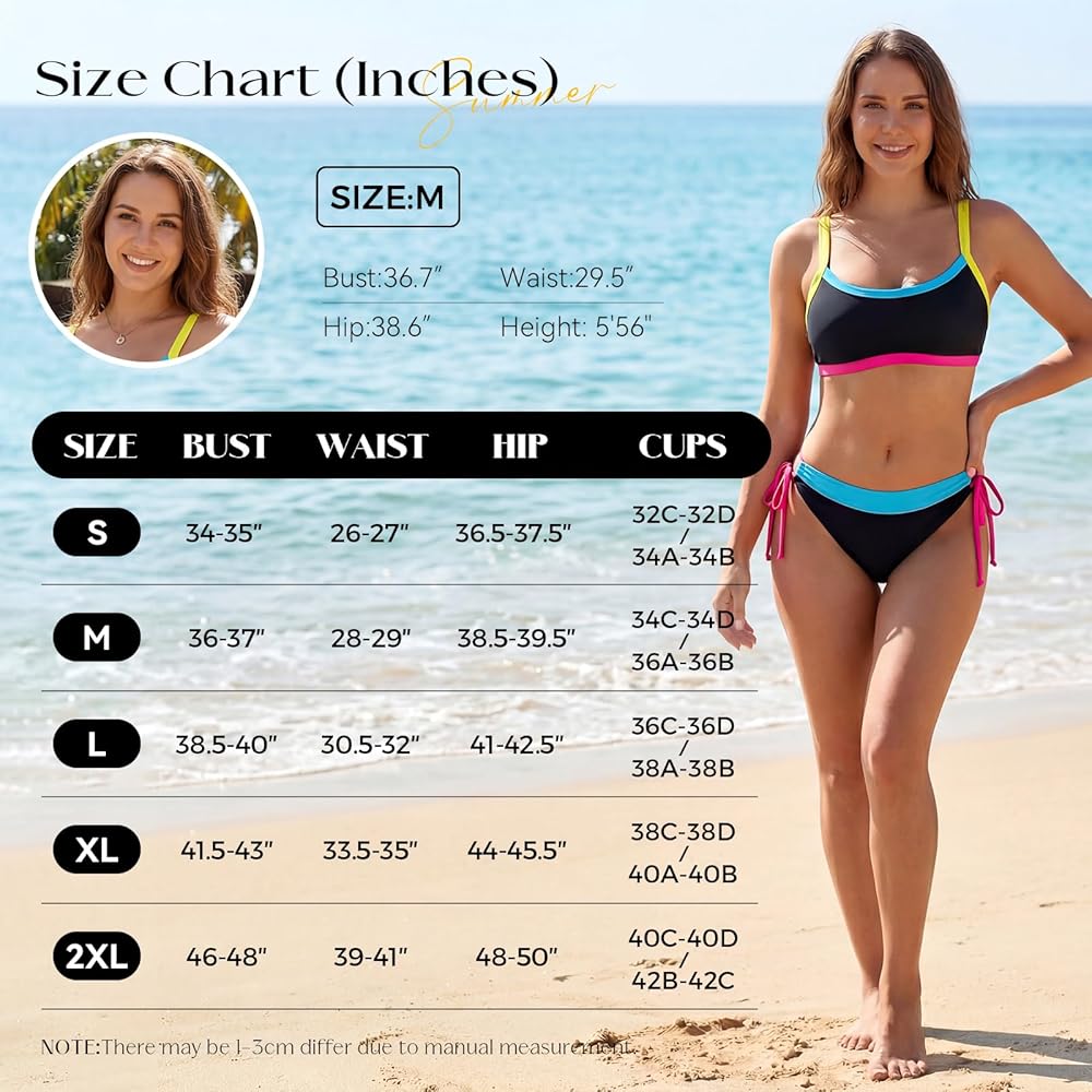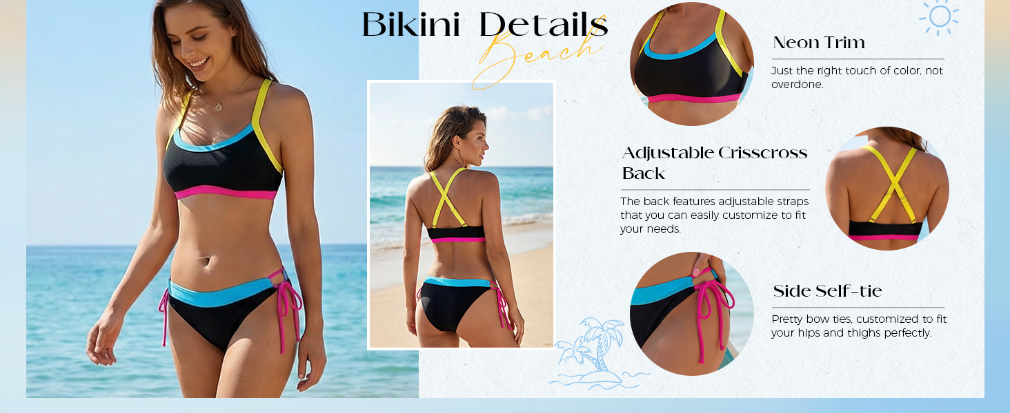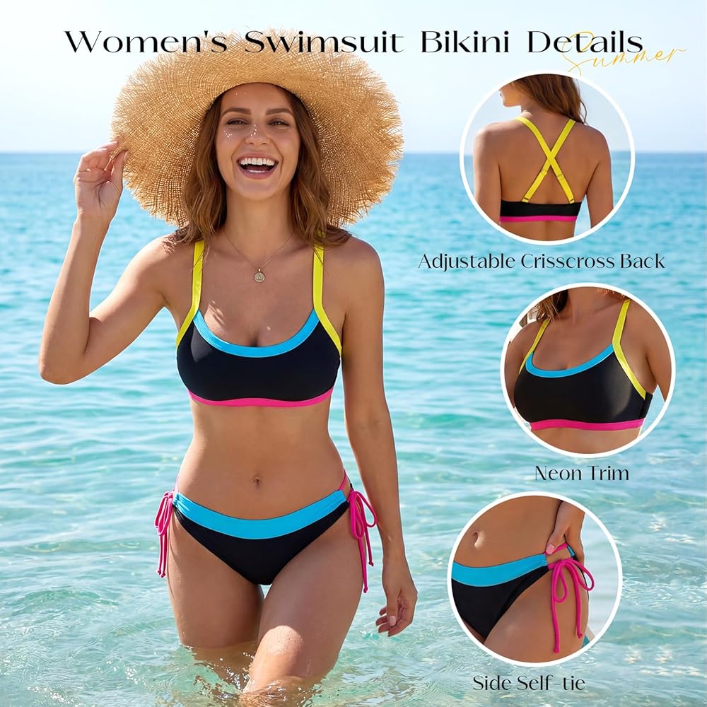【تصميم عصري لحجب الألوان】تتميز مجموعة البكيني النسائية الجديدة هذه بتصميم جريء لحجب الألوان. إن اشتباك القاعدة السوداء مع لمسات نابضة بالحياة يخلق تباينًا مذهلاً يغري شخصيتك. كن مميزًا وكن مركز الاهتمام بجوار حمام السباحة أو على الشاطئ أو في الحفلات. إنه خيار ملابس السباحة الأكثر أناقة للنساء في عام 2026.