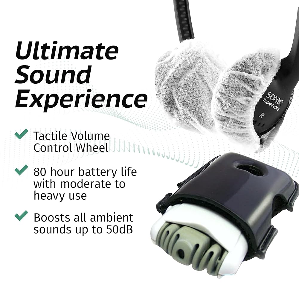• Unmatched Sound Amplification: Experience amplified conversations, lectures, TV, and nature sounds with the SE7500. This amplifies ambient sounds up to 50 decibels with adjustable volume control, auto shut-off, and an impressive 80-hour battery life - perfect for indoor or outdoor use.