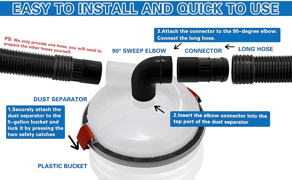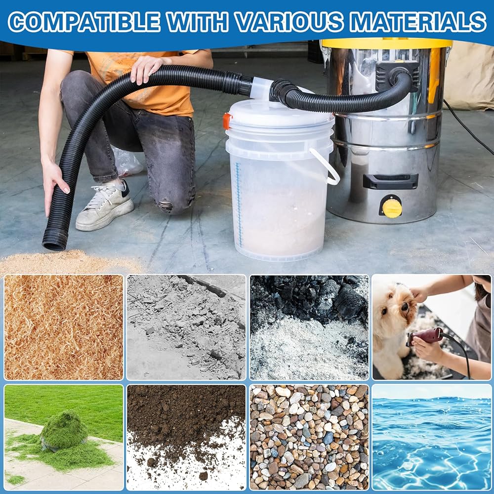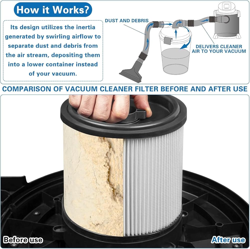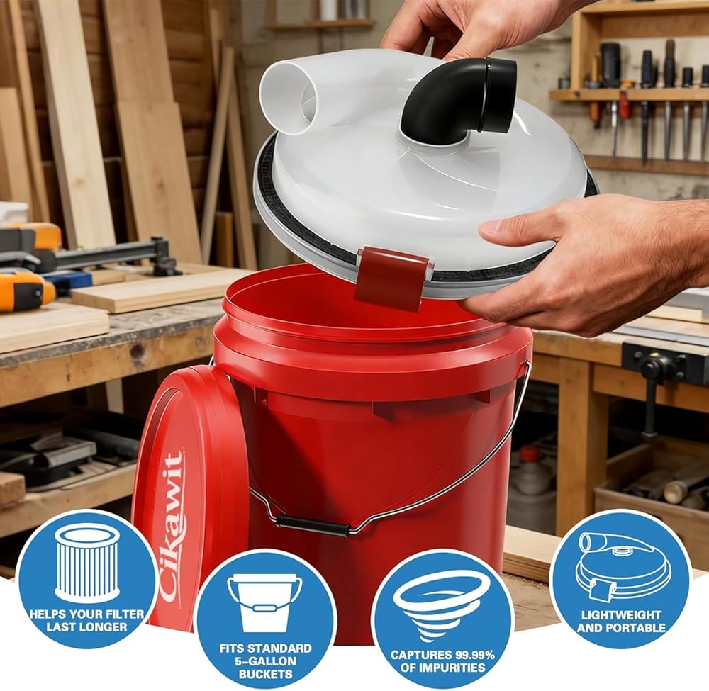 فاصل الغبار المتقدم: يساعد على توجيه رقائق الخشب والغبار والجزيئات الأكبر حجمًا إلى الدلو قبل أن تصل إلى مكنستك الكهربائية، مما يحافظ على نظافة مساحة العمل الخاصة بك ويقلل من تراكمها داخل المكنسة الكهربائية.
