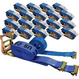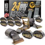 Get added flexibility to your interior van trailers with Double Fitted E Track Ratchet Straps 20 Pack from US Cargo Control. Also known as spring loaded ratchet straps, semi straps, semi truck straps, box truck tie downs, trailer ratchet straps, cargo van straps, or dry van straps. Our durable load straps for trucks and semi trailers are designed with a 4,400-lb. assembly break strength and 1,467-lb. working load limit to secure even the heaviest of cargo loads. Use load securement straps to secure a wide variety of cargo, including pallets, furniture, recreational vehicles, and appliances. Each of our E-Track straps for trucks heavy duty is assembled with 2 inch wide industrial-grade gray polyester webbing that measures 16 feet long, and includes a 4-foot fixed end and 12-foot loose end. The fixed end comes with (3) automatic locking spring E fittings with the third close to the ratchet to secure cargo in small or tight spaces. They could be used as moving truck tie downs to assist during moving jobs when you need to adjust the strap however you need. The professional-grade polyester webbing has less stretch than nylon and is made with a protective coating that adds protection from the sun, weather, and normal wear and tear. These e track tie downs assemblies also come with heav(more...)