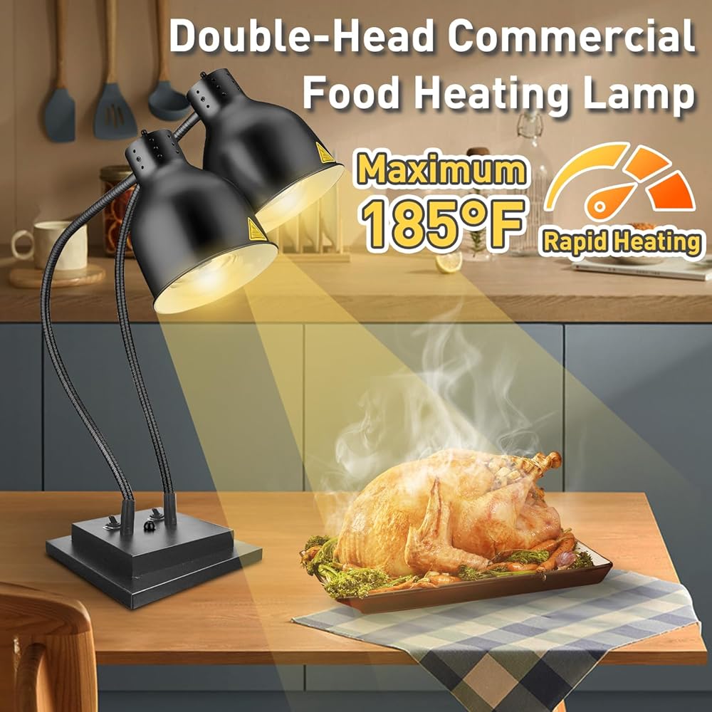 مصباح تسخين الطعام، مصباح تسخين الطعام التجاري، مصباح تسخين كهربائي محمول للطعام، ضوء مزدوج لتدفئة الطعام لتقديم الطعام، خدمة الطعام، بوفيه المطبخ مع لمبة إضافية
