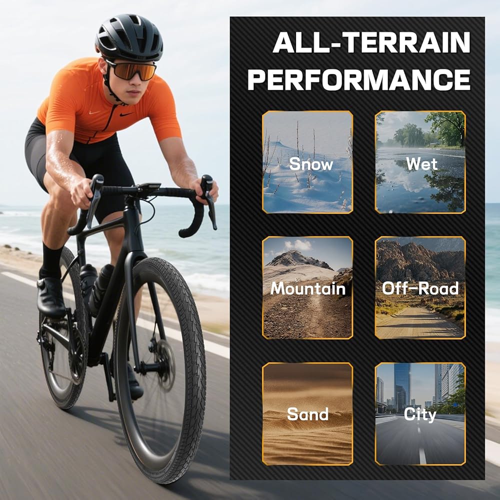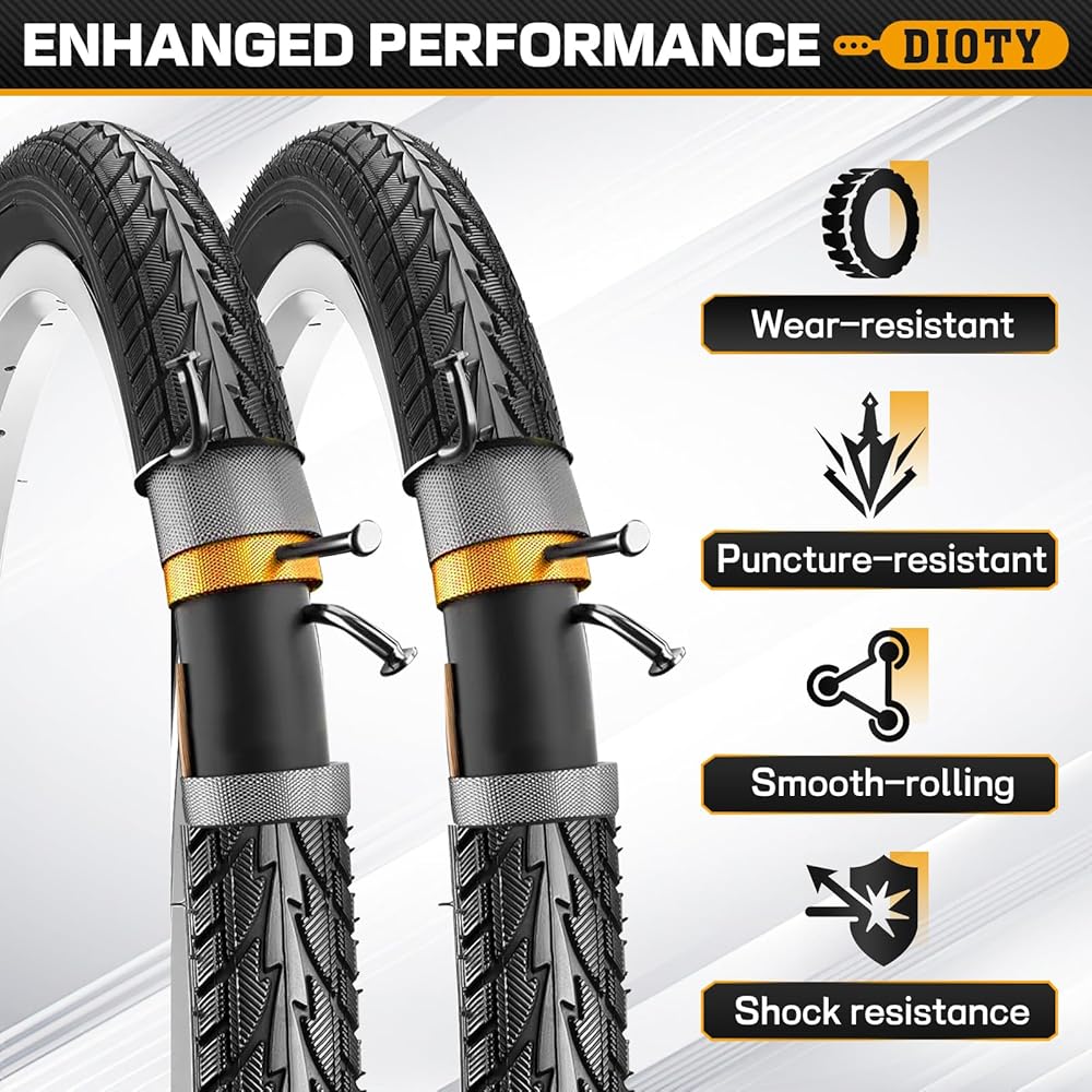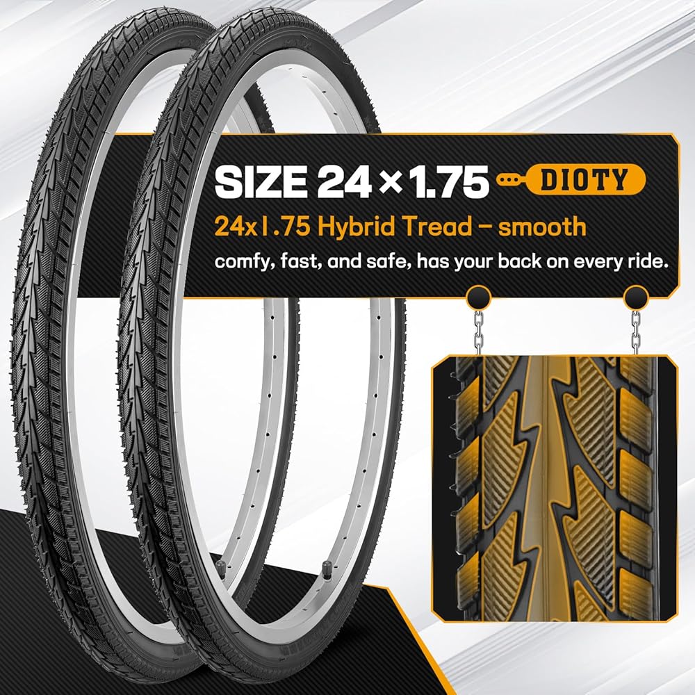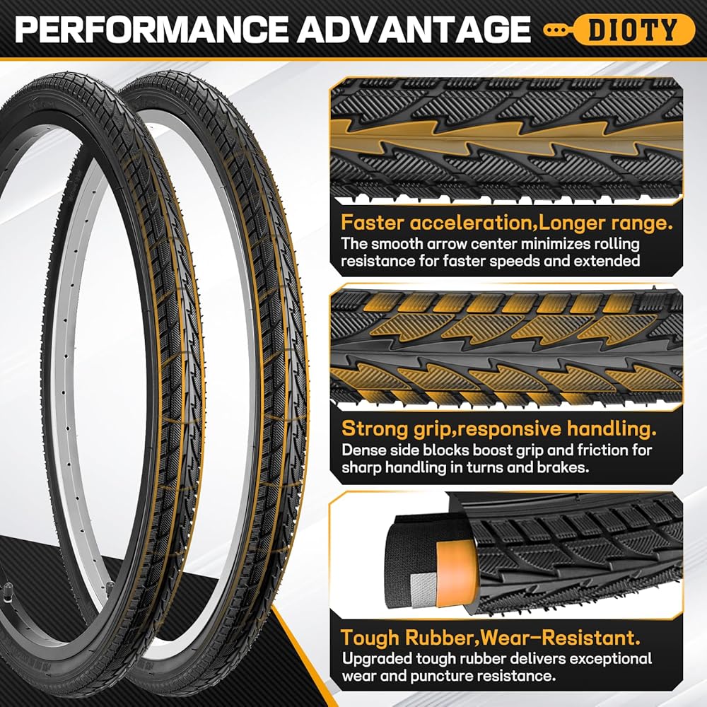 【بناء فائق المتانة】: إطارات الدراجة مقاس 24 × 1.75 مصنوعة من مطاط عالي الجودة ومعززة بتقنية سلك النايلون - مما يعزز بشكل كبير مقاومة التآكل ويطيل عمر خدمة الإطار. لا مزيد من القلق بشأن الثقوب المتكررة أو الحاجة إلى استبدال مبكر.