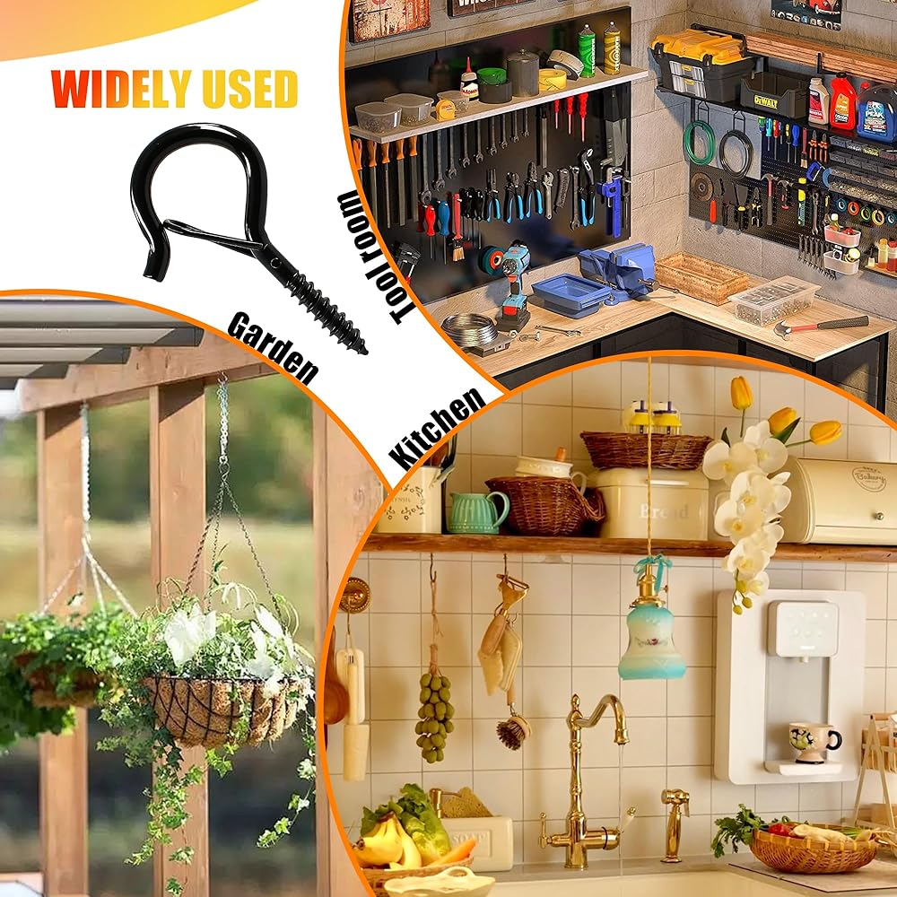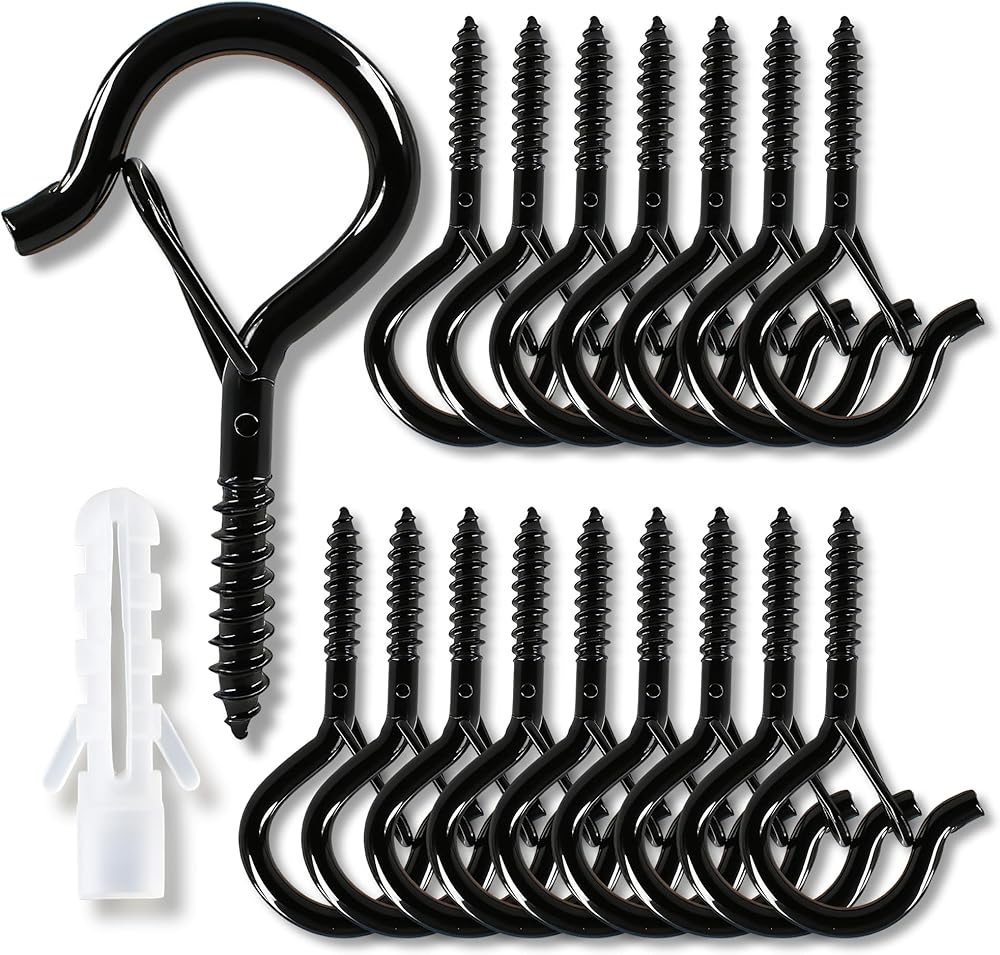 installation takes just 3 simple steps: drill a pilot hole, add the anchor if needed, then screw in the hook. they fit eave, patio, ceiling, wood, tree, fence and more.