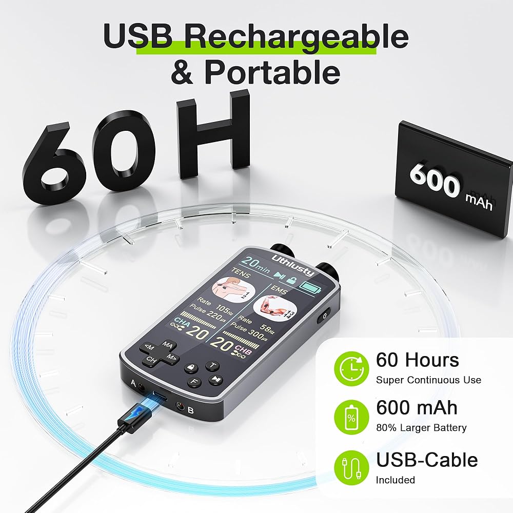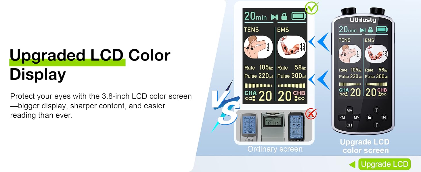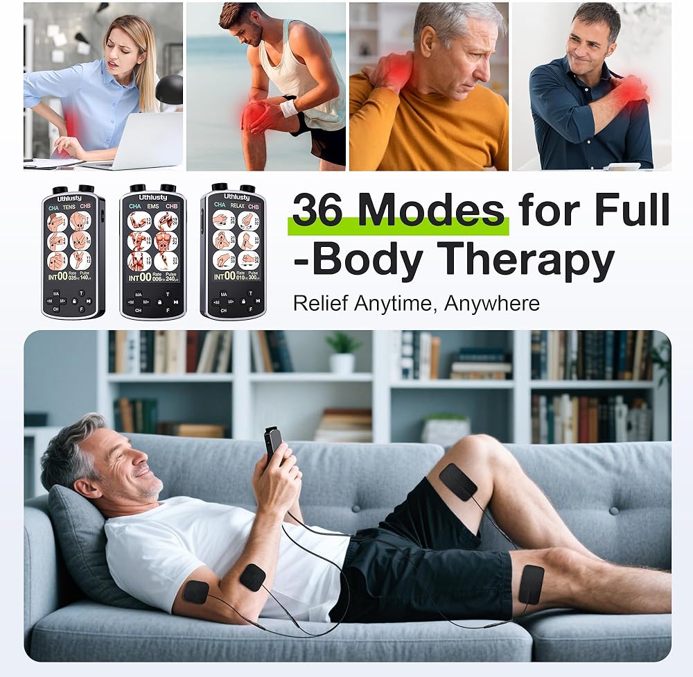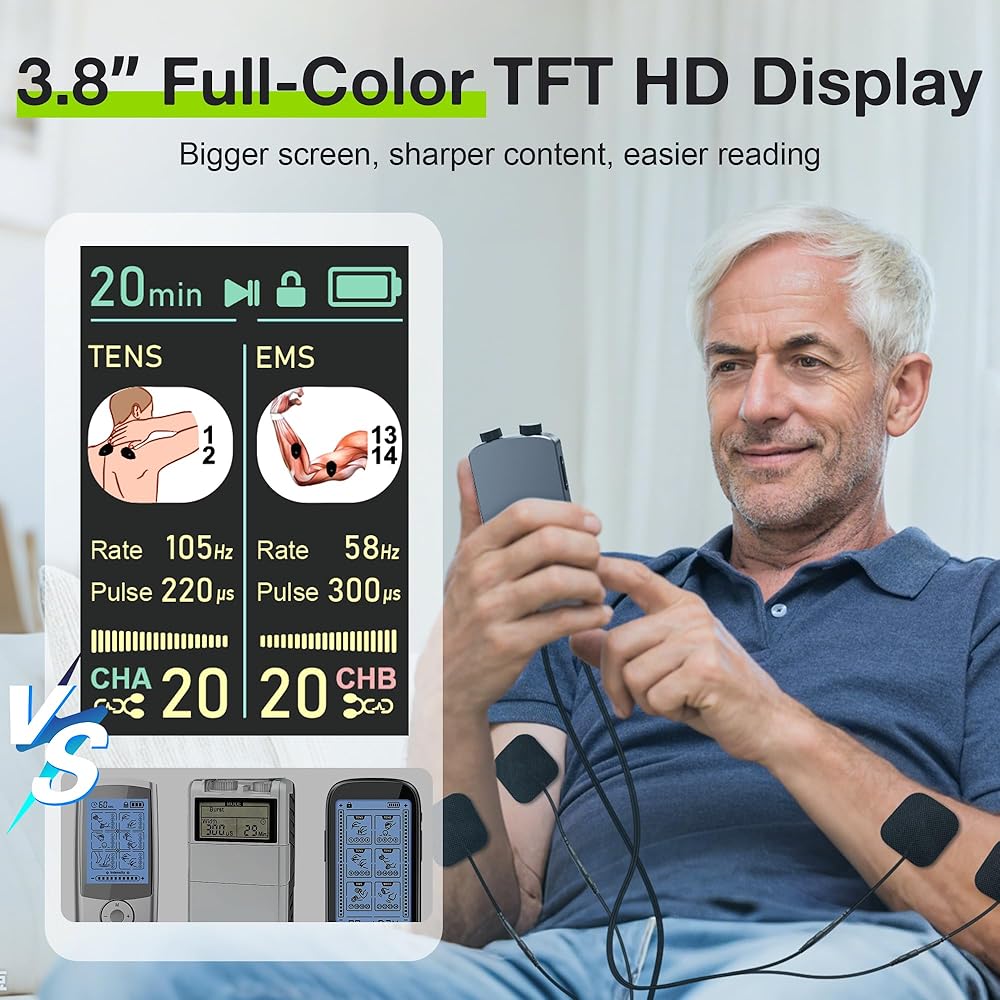 وحدة TENS لتحفيز العضلات مع شاشة ملونة، جهاز TENS EMS ثنائي القناة مع تردد قابل للتخصيص وعرض النبض، 36 وضعًا، 20 مستوى كثافة، جهاز تخفيف الألم قابل لإعادة الشحن - أسود (تخطيط الزر B)