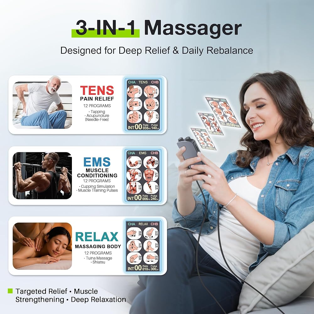 • وحدة TENS EMS 4 في 1: محفز العضلات 4 في 1 من Belifu لتخفيف آلام الكتف والرقبة وعرق النسا والظهر يجمع بين تقنيات العلاج بالعشرات وEMS والاسترخاء والنبض والمعدل بنفسك في جهاز TENS واحد. بالمقارنة مع وحدات العشرات الموجودة في السوق، تعد وحدة العشرات هذه خيارًا مثاليًا لأنماط الاستخدام الاحترافية والشخصية، مما يسمح لمستخدمي وحدة العشرات بتحقيق مجموعة متنوعة من الاحتياجات المختلفة في جهاز واحد. اضغط لفترة طويلة على الزر "F" لحفظ الإعداد الحالي الخاص بك كمفضل. استخدمه فقط اضغط على زر F واضغط لفترة طويلة للتطبيق.