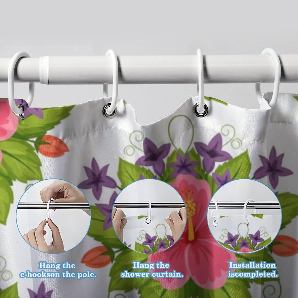 Comes with 12 metal eyelets and thick C-shaped hooks—glides smoothly, no jamming, extending lifespan. Single-sided digital printing with heat dye sublimation resists fading, keeping patterns vibrant for years. It's a luxury shower curtain blending durability and elegance.