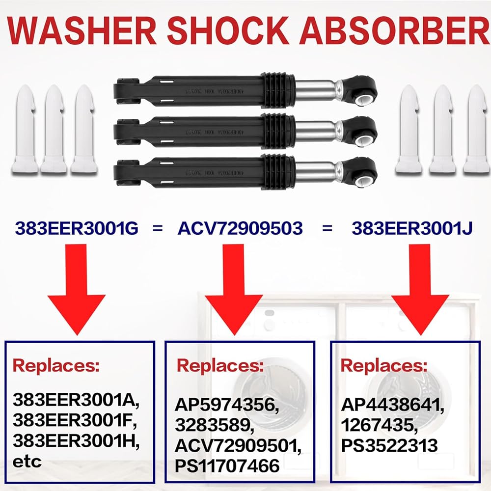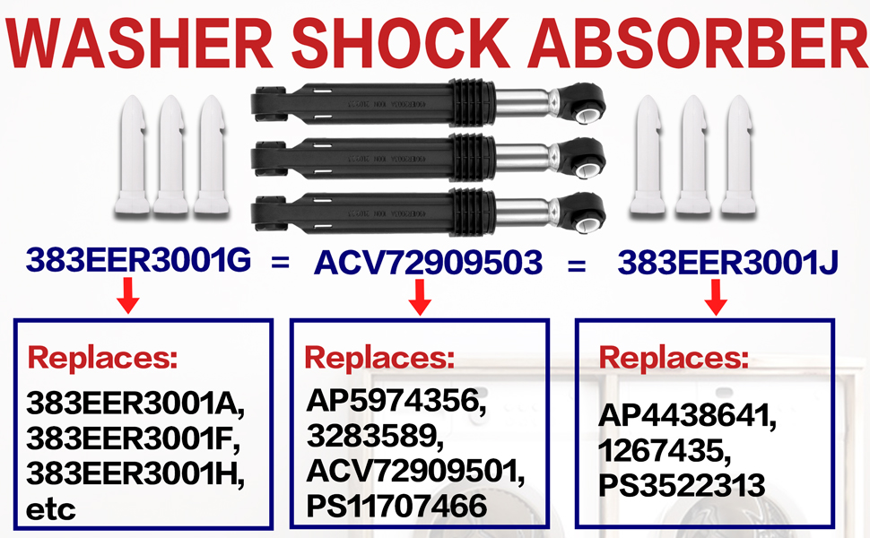أداء موثوق به: تم تصنيع ماصات صدمات الغسالة WM2487HWM WM4000HBA من مواد عالية الجودة، ومتينة وتم اختبارها بدقة لضمان إمكانية استخدام المنتج لفترة أطول، ولا داعي للقلق بشأن الاستبدال المتكرر لامتصاص الصدمات
