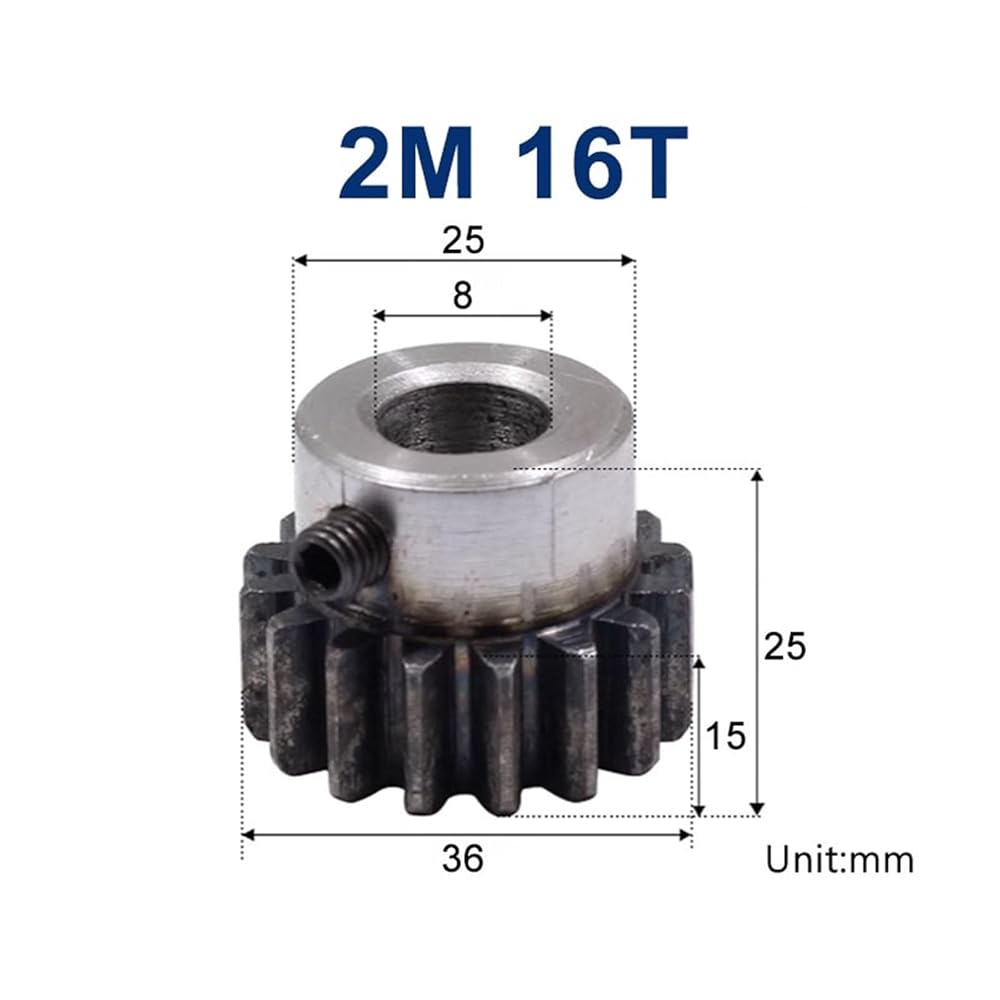 Spur Gear Rack Pinion 2 Modulus 16T Bore 8mm Staight Teeth Positive Gears 45# Steel CNC Transmission 1Pcs
