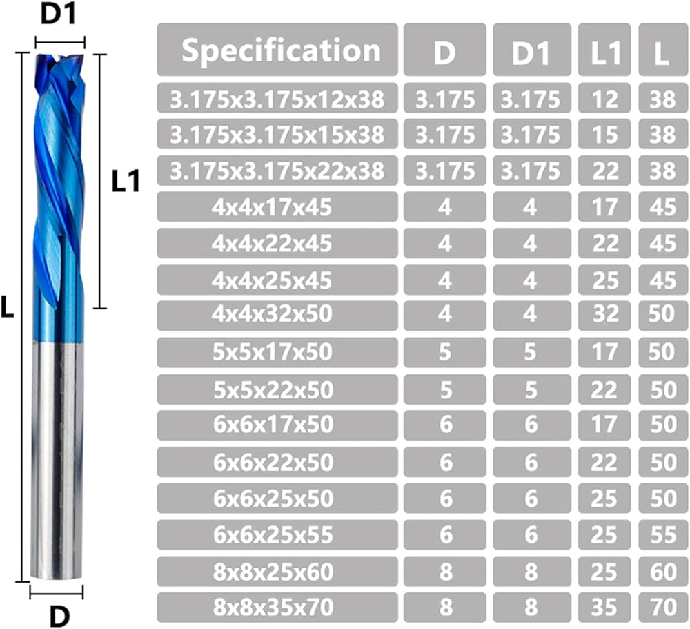نهاية مطحنة كربيد 3.175/4/5/6/8 مم عرقوب قاطعة المطحنة CNC لقم التوجيه نانو الأزرق المطلي بالألومنيوم لأنواع المعادن (3.175x3.175x12x38)