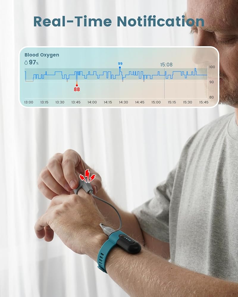 جهاز مراقبة الأكسجين في الدم من Vibeat OxyU - تتبع مستمر للأكسجين ومعدل ضربات القلب مع مستشعر الإصبع، ومقياس تأكسج نبض بلوتوث مع إشعار في الوقت الحقيقي، تطبيق مجاني وتقرير للكمبيوتر الشخصي