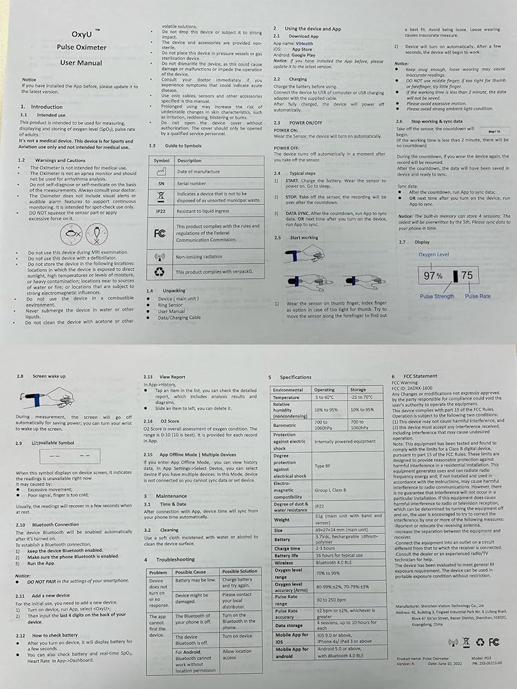 تخزين تطبيقات OxyU وViHealth: يعمل بشكل مستقل أو مع التطبيق. يقوم بتخزين 4 مجموعات من البيانات على الجهاز، كل مجموعة يمكن أن تصل إلى 10 ساعات. وتتم مزامنة البيانات تلقائيًا مع التطبيق عبر البلوتوث. (في OxyU، سيتم استبدال المجموعة الأولى من البيانات بالمجموعة الخامسة، لذا يرجى تحميل بياناتك إلى التطبيق على الفور. مساحة تخزين غير محدودة لتطبيق ViHealth)