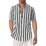 يقدم هذا القميص ذو الأكمام القصيرة نفسه كخيار مناسب لأيام الصيف الحارة بسبب تصميمه المخطط غير المعقد.