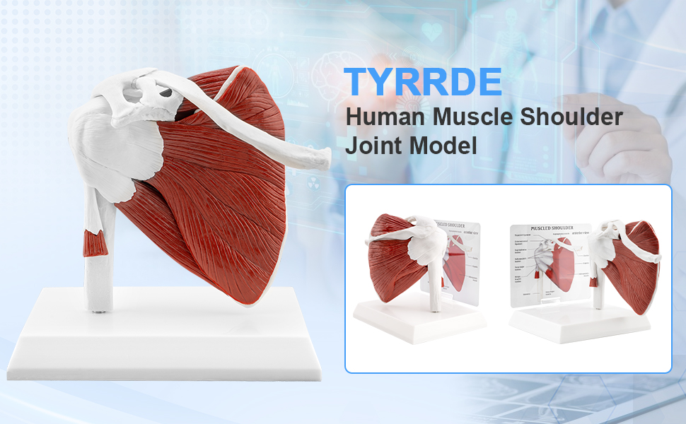 tyrrde نموذج مفصل الكتف العضلي، 1: 1 نموذج تشريح الكتف الأيمن لجسم الإنسان بالحجم الطبيعي مع الأربطة، خطوط العضلات الواضحة، هيكل متين، قاعدة قابلة للإزالة ثلاثية الأبعاد، دليل للتدريب التعليمي الطبي